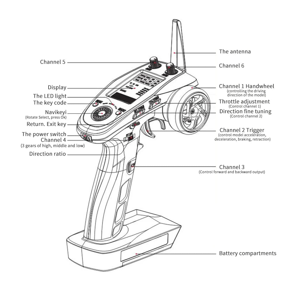 GT5 transmitter using 2.4GHz AFHDS 2A system, with strong active and passive anti-interference ability. With FS-BS6 receiver, the output of 6 channels, compatible model cars, boats and other models.