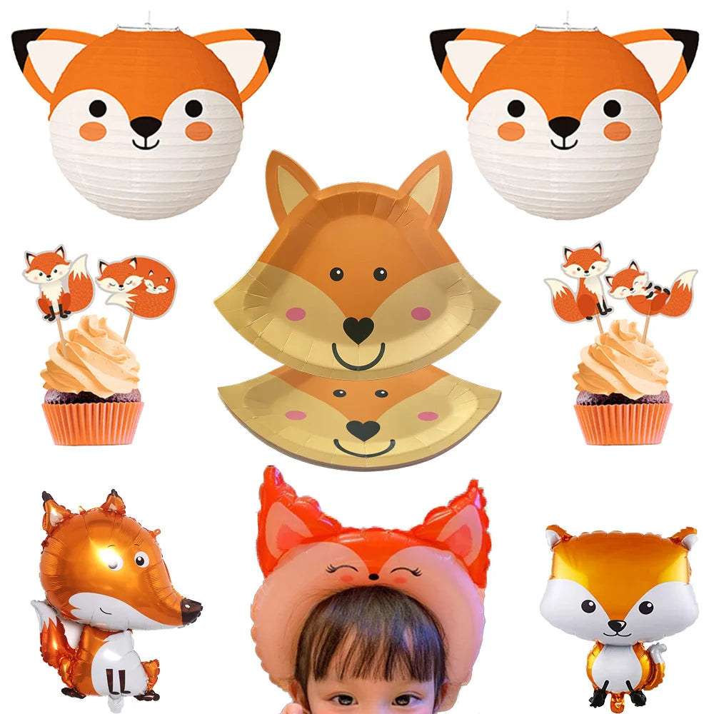 Fox Birthday Decorations Balloon Cupcake Toppers Woodland Animals Theme Party Dress Up Supplies Fox Paper Lantern Kids Gifts
