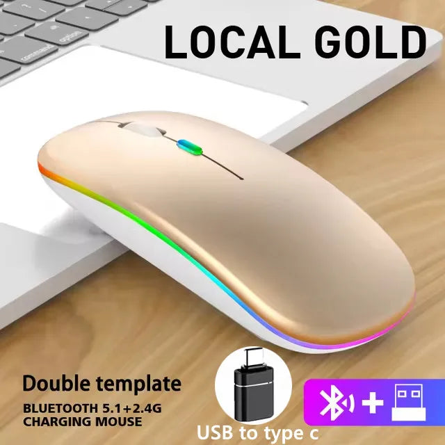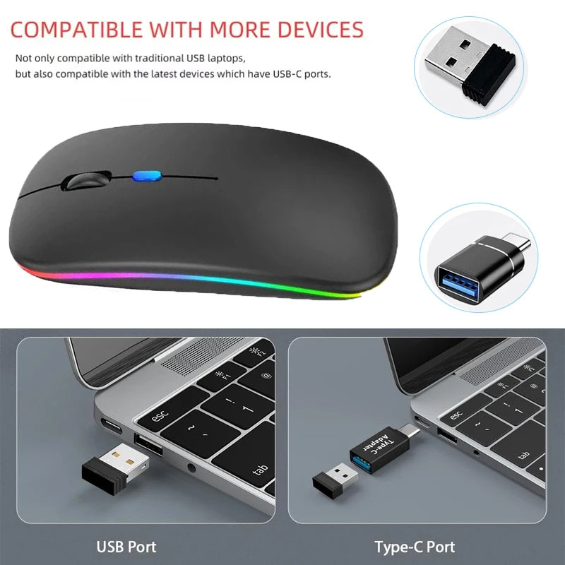LED Wireless Mouse Rechargeable Silent Bluetooth-compatible Mouse Portable Dual Mode Computer Mice for Laptop Desktop MacBook