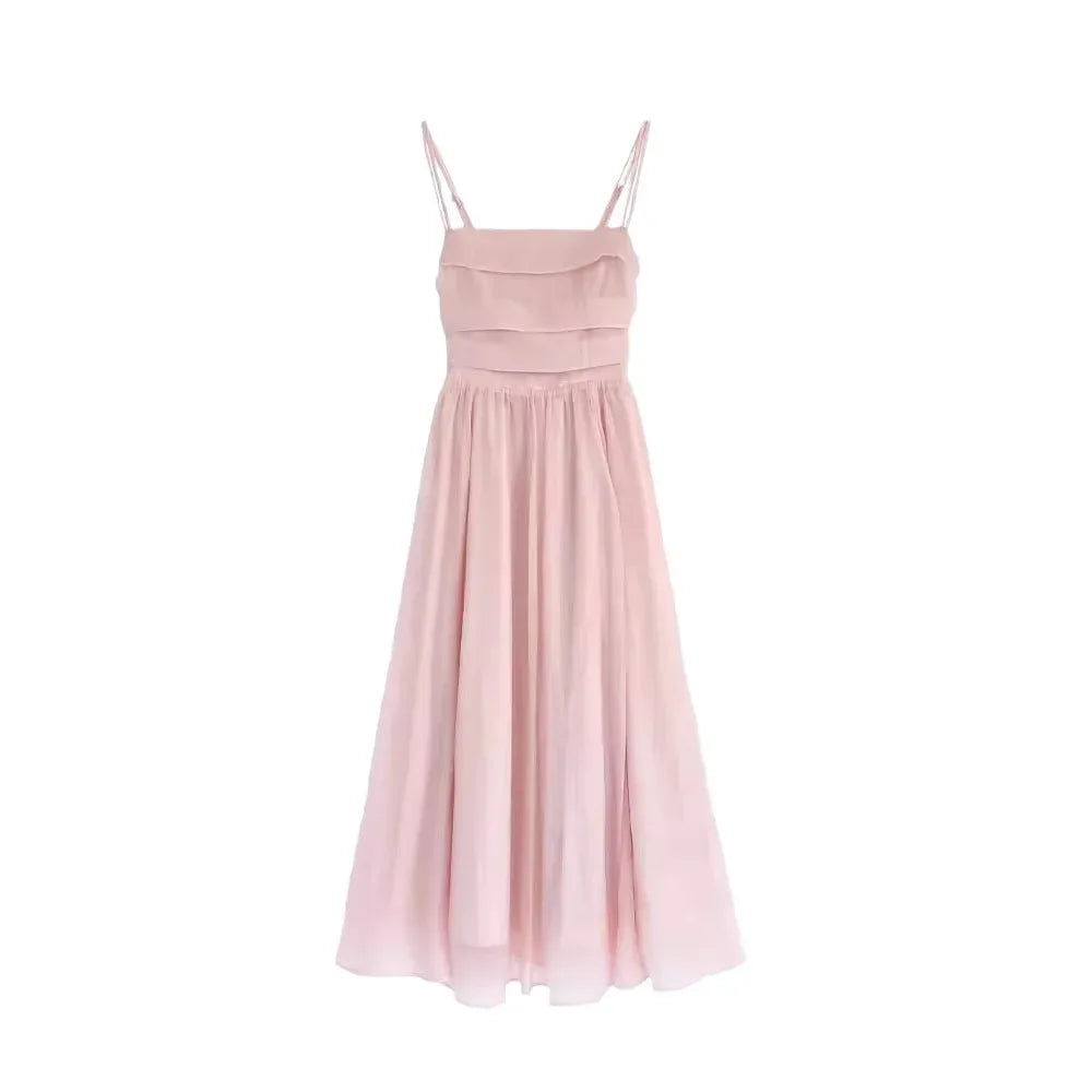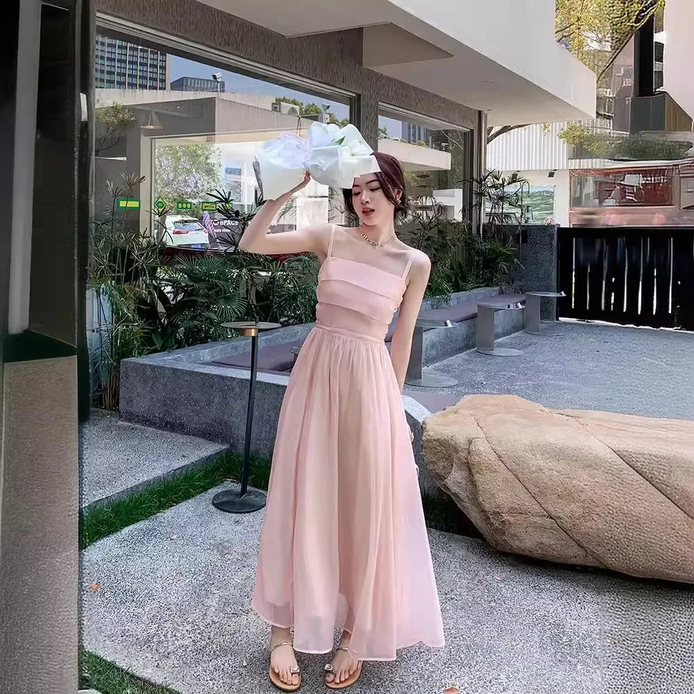 Pink Fairy Tank Dress 2024 New Style Women's Beach Vacation French Style Dress Sleeveless Summer Clothing Forest System