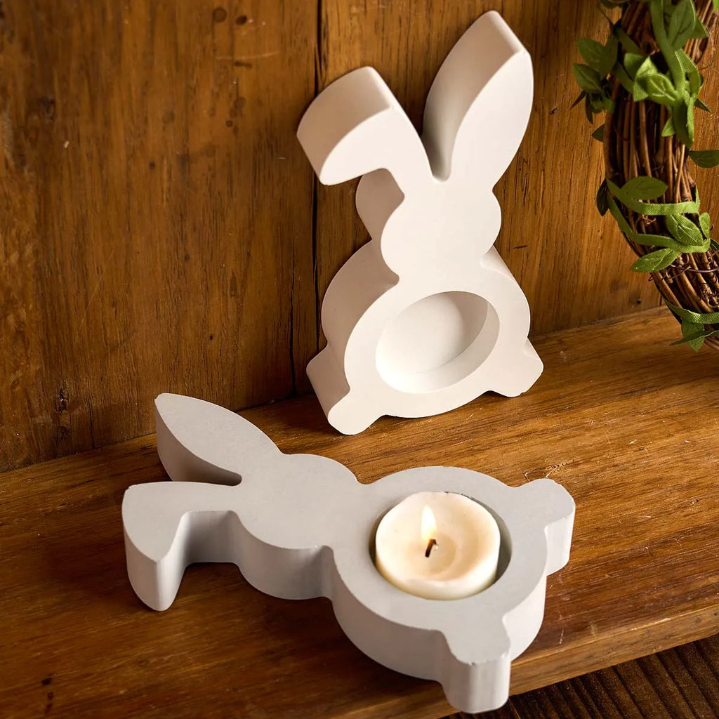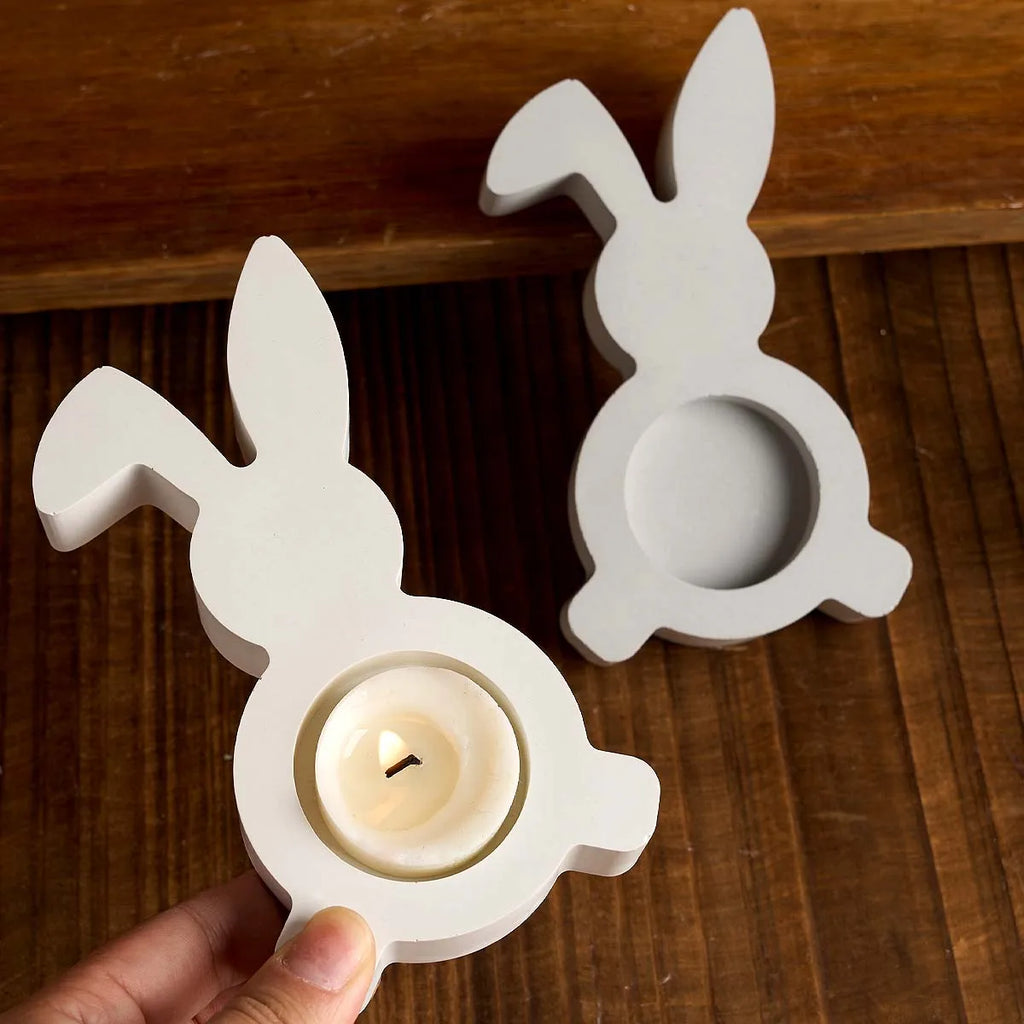 Rabbit Candle Holder Silicone Mold DIY Easter Bunny Candlestick Ornament Craft Gift Making Plaster Concrete Resin Casting Molds