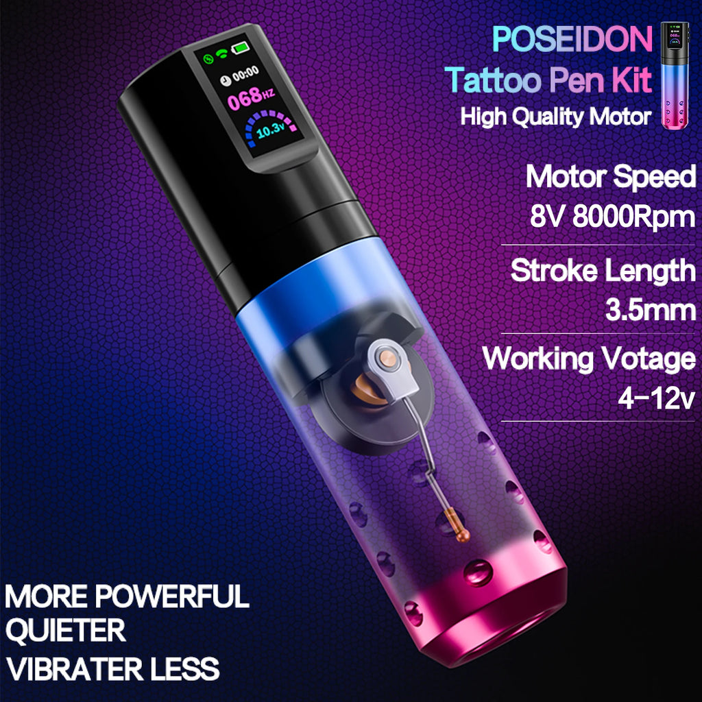 Tattoo Kit POSEIDON High Power Tattoo Pen Kit For Permanent Makeup Tattoo Machine Kit Gradient Tattoo Power Supply Tattoo Gun Ki