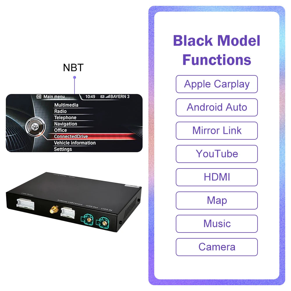 This amazing kit adds full CarPlay functionality to your existing NBT,EVO while retaining all the original NBT features.The CarPlay system supports button and steering wheel control and is integrated with the console or glove box USB.Whether your NBT and EVO system is factory-equipped with navigation, phone module or Bluetooth, whether it's Apple Maps, Spotify, making/receiving calls or using Siri to reply to text, the system fully supports Apple systems and phone features.