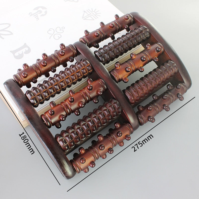 Wooden Foot Massage Roller Big Five-row Wooden Foot Massager Stimulating Acupoint Feet Plantar Fasciitis Roller Reflexology