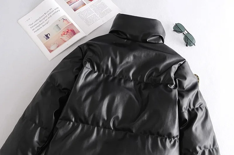 Tangada Women brown fur faux leather jacket coat buttons 2022 Winter Female pu turn down collar jacket overcoat