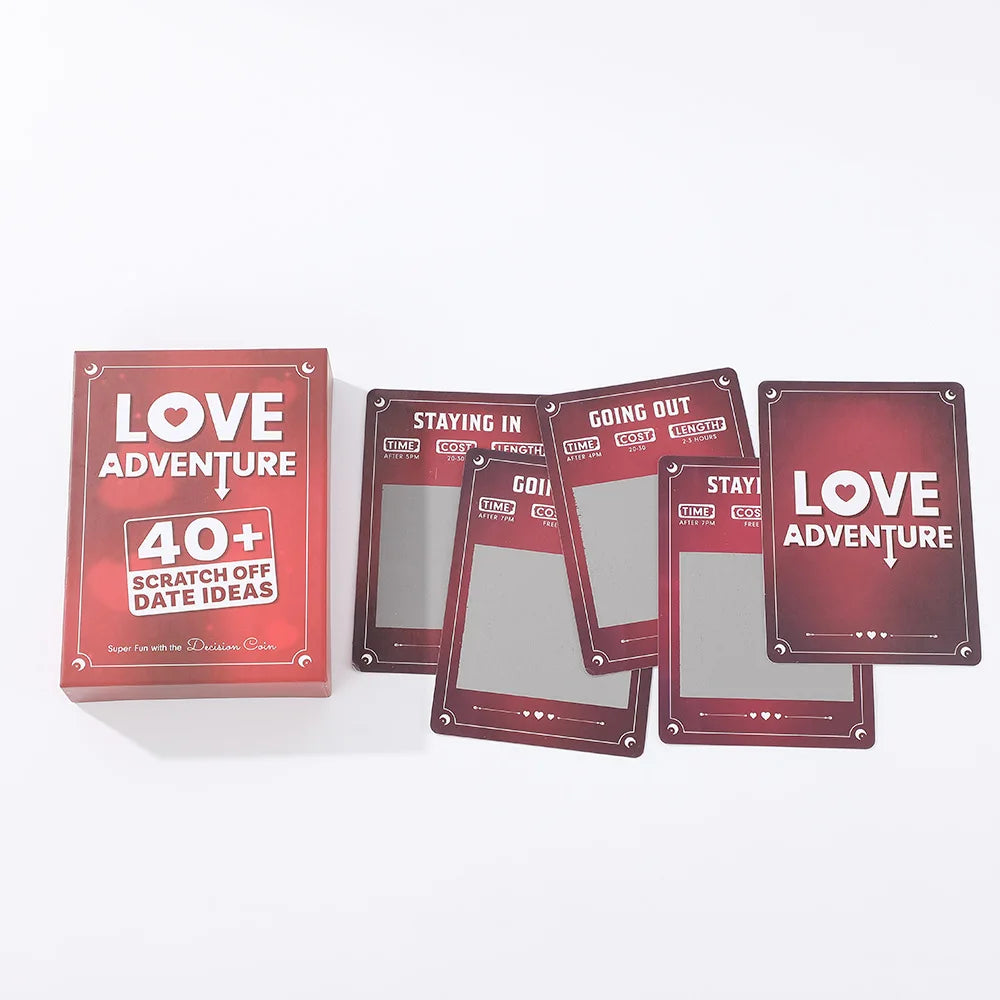 Love Adventure Scratch Off Date Ideas, 40+ Unique Cards with QR Code Surprises, Decision Coin, Blank Cards, Game for Couples