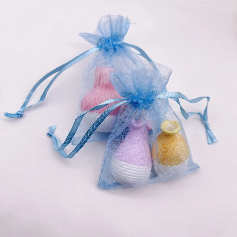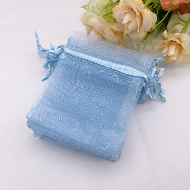 100pcs Sky Blue Gift Bag Drawstring Organza Bag Blue Organza Gift Bags Wedding Packaging Jewelry Storage Bags Mesh Sachet Pouch