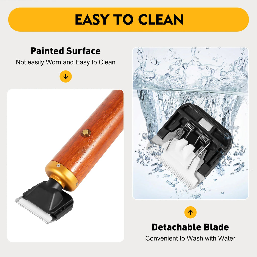 Quiet Operation: The wooden handle has the advantages of shock absorption and sound insulation. In addition, the copper motor has low noise during operation (about 40dB), allaying your pet's fear of trimming.