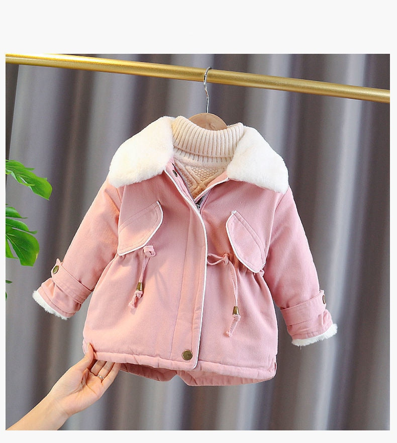 Girls Jackets 2021 New Winter Coat Foreign Style Children's Padded Coats Winter Plus Velvet Padded Clothes Fur Collar Clothing