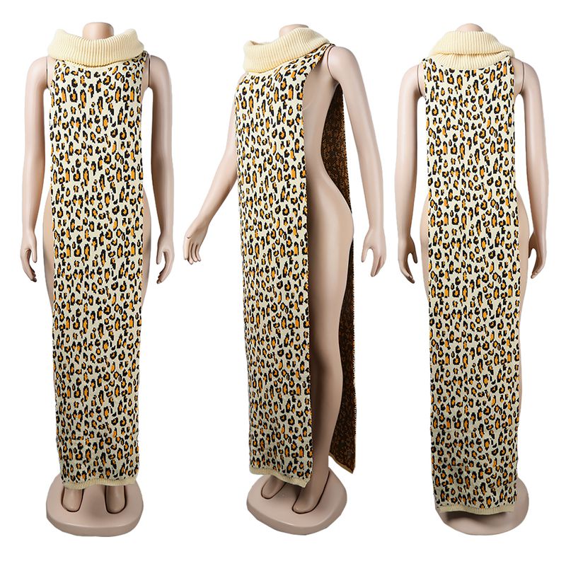 HAOYUAN Sexy Knitted Side Split Sweater Dress Sleeveless Spring Clothes for Women Y2k Outfits Birthday Party Long Maxi Dresses