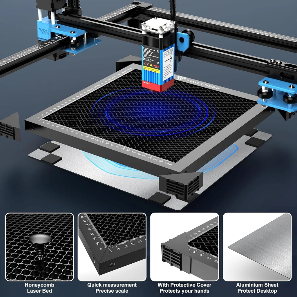 With this new version, we have added clear measurement marks on the edge of the laser bed. The measurement markings that make it real useful for placement. Also very handy for measuring materials for cutting and engraving projects.