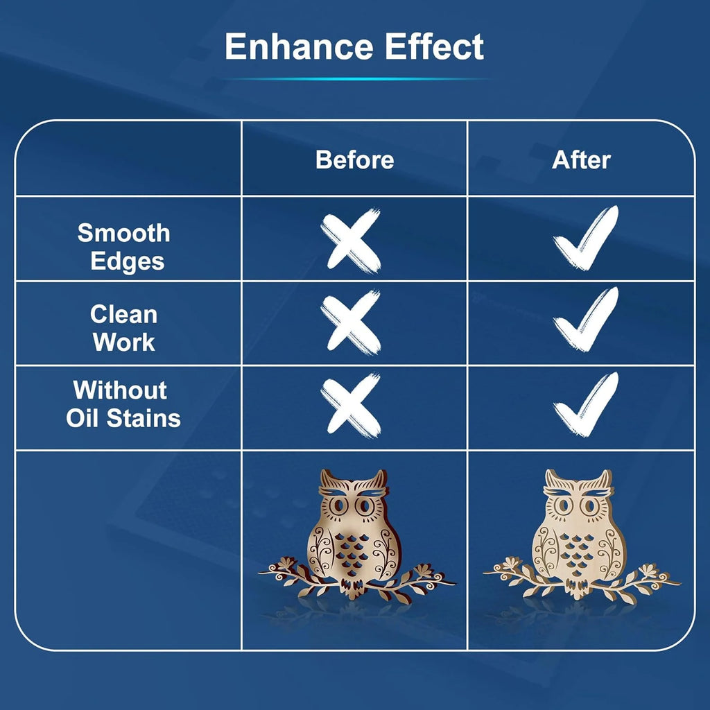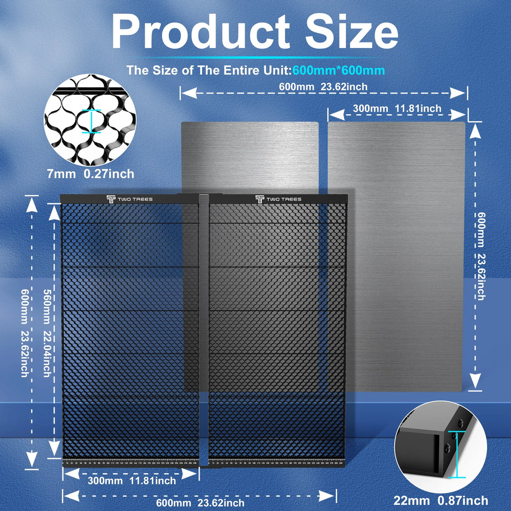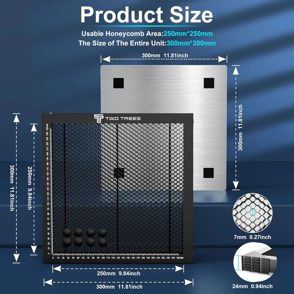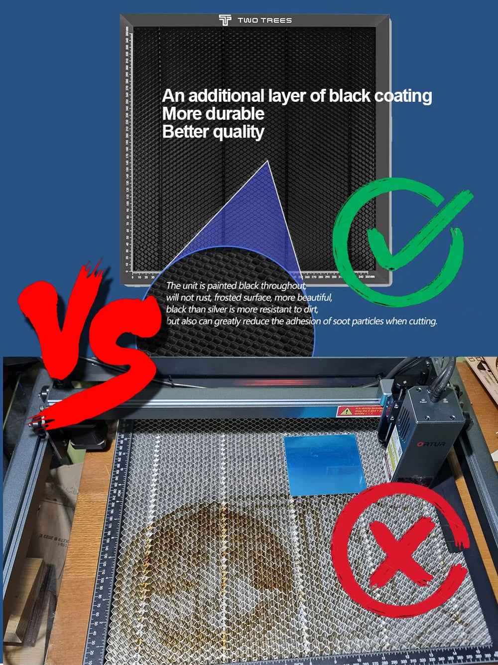 The honeycomb lattice for optimal air flow while cutting. It will help control the temperature of the piece being cut, quick cooling. That will reduce any smoking, soot, or warping of the piece on which you are working. It really reduces smoke and char on back of the piece when cutting, Obtains a Better Build Quality.
