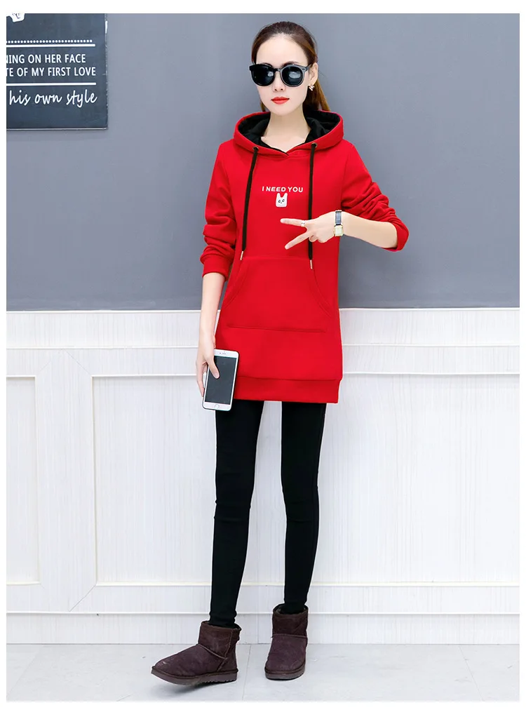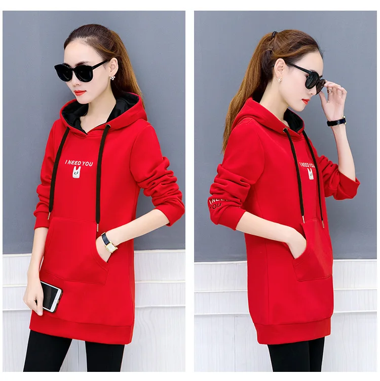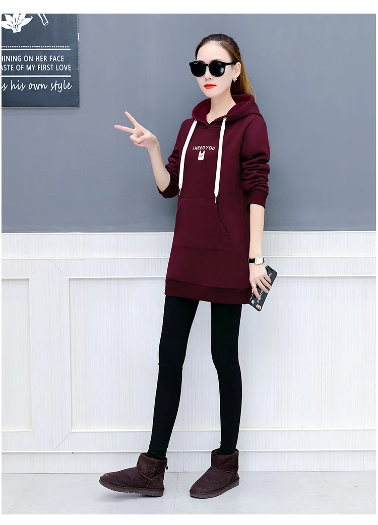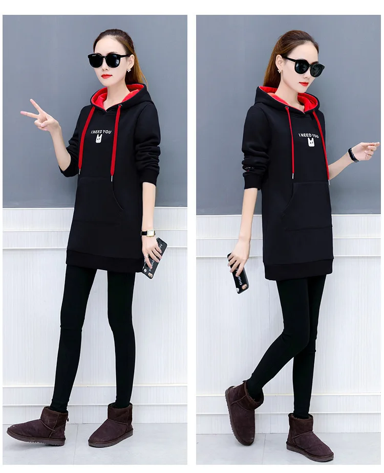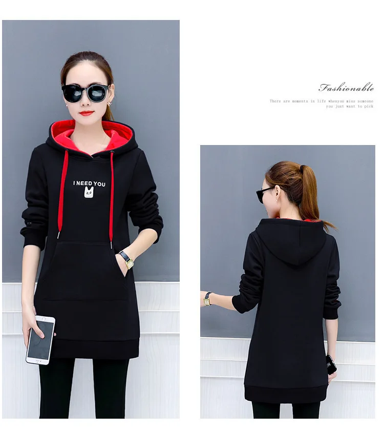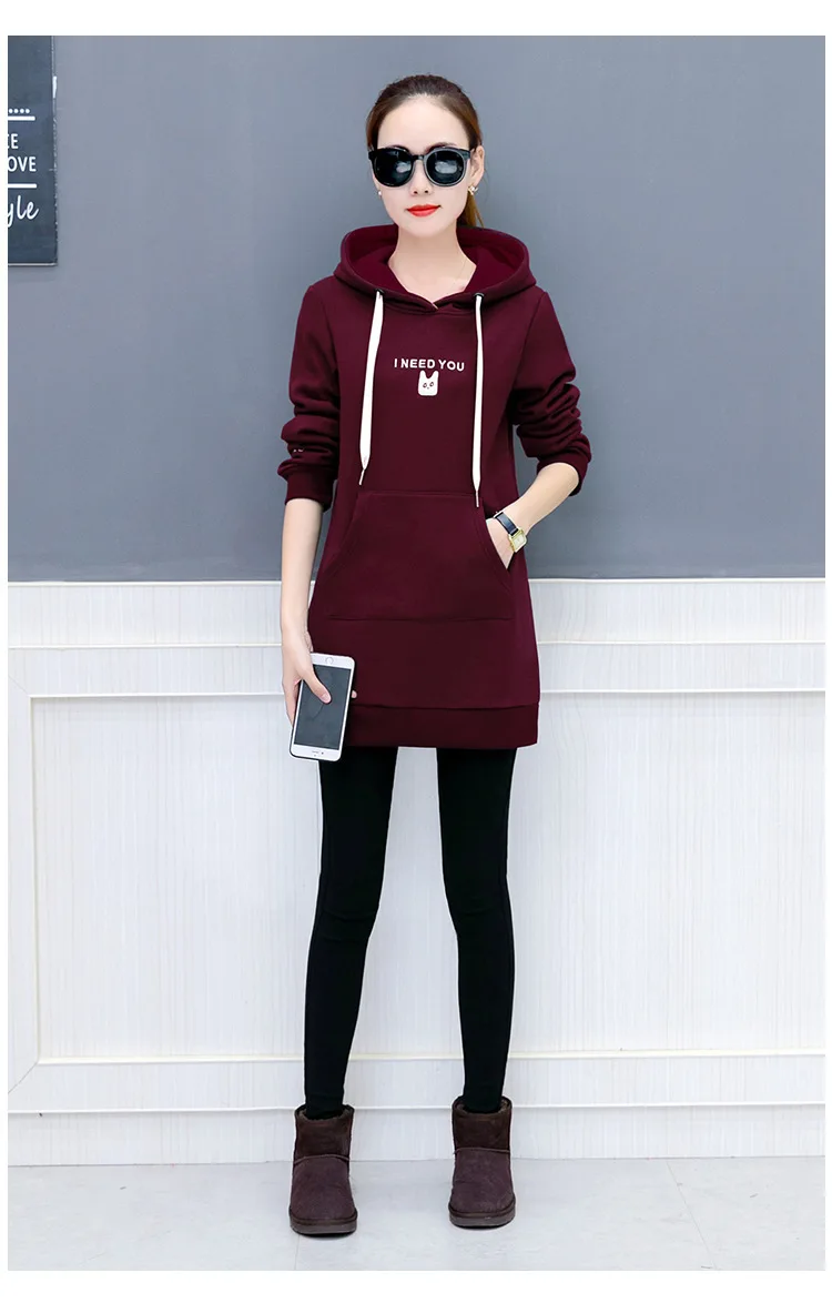 2021 Winter Women Long Thick Hoodies Sweet Knitted Casual Sweatshirt Harajuku Students Pullover Autumn Moletom Steet Fashion