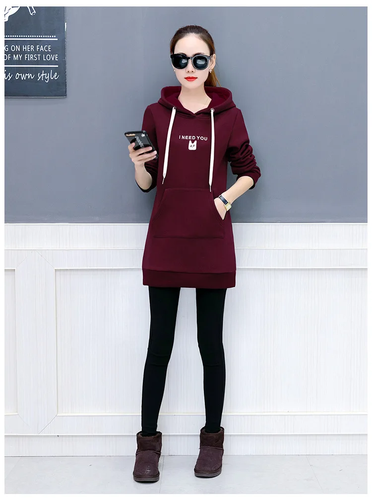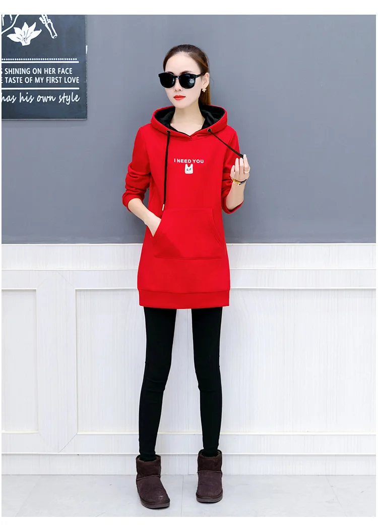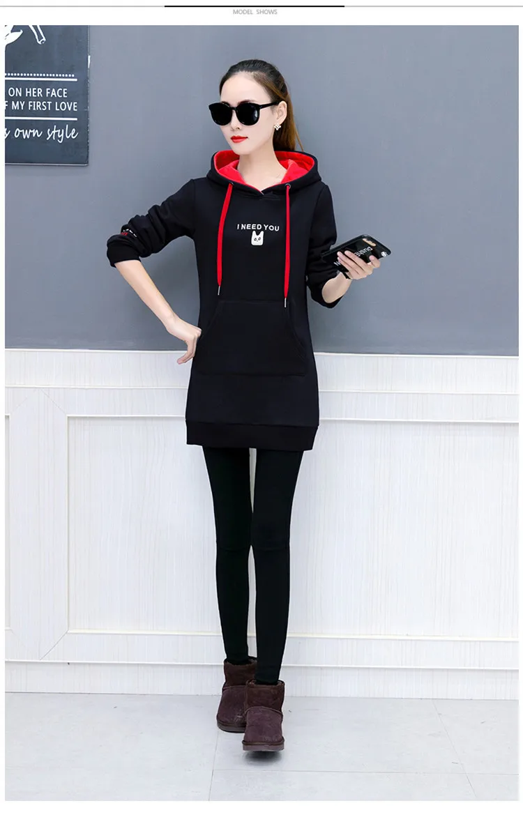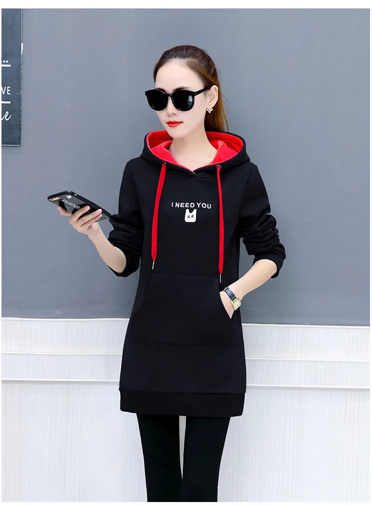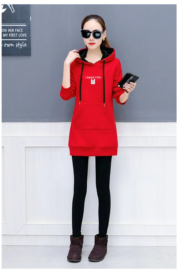 2021 Winter Women Long Thick Hoodies Sweet Knitted Casual Sweatshirt Harajuku Students Pullover Autumn Moletom Steet Fashion
