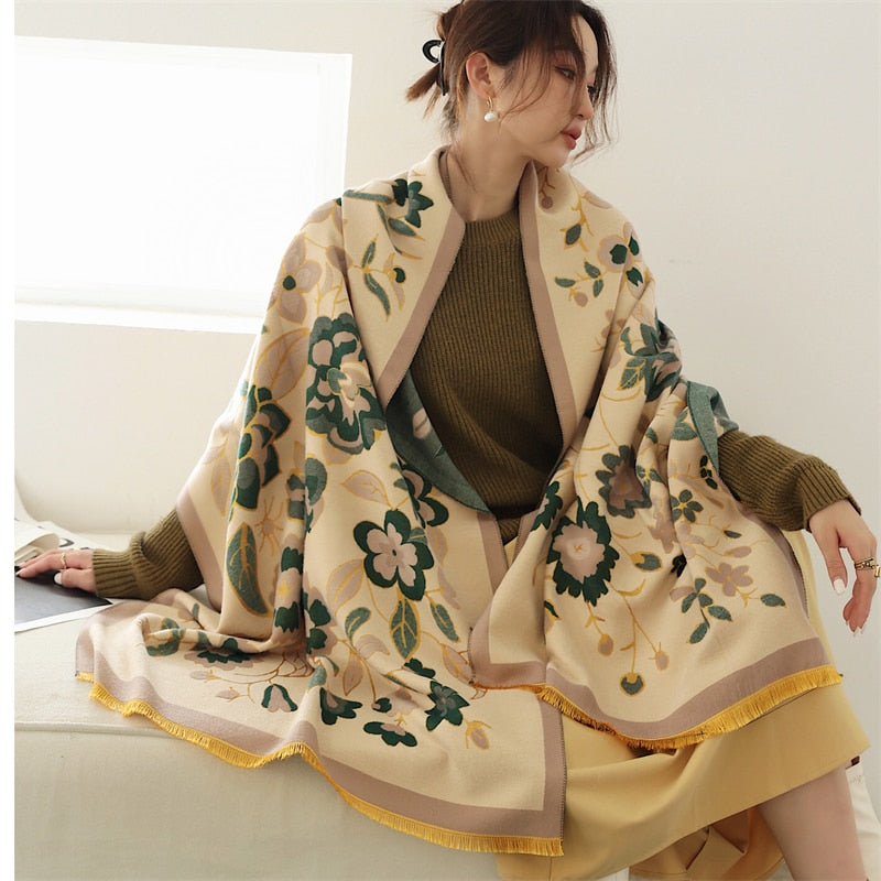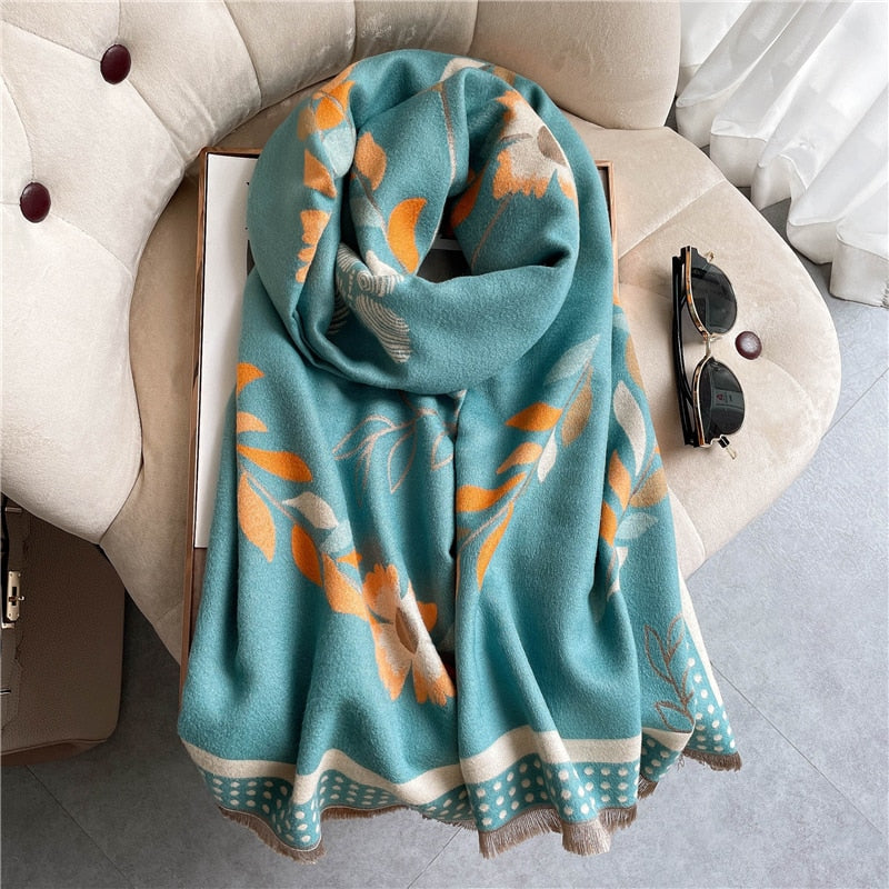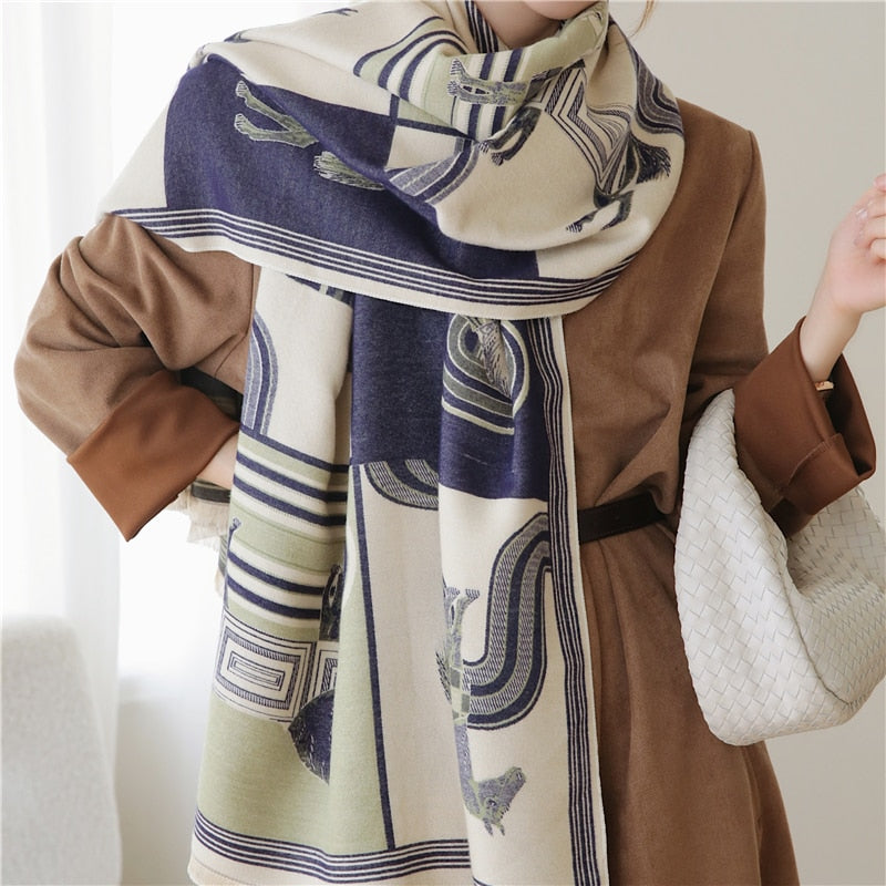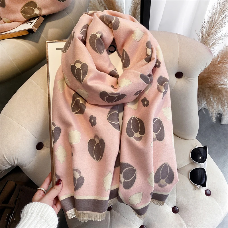 Warm Winter Scarf Cashmere Women Pashmina Design Print Shawls Wrap Female Thick Blanket Soft Bufanda Stoles 2022 Fashion