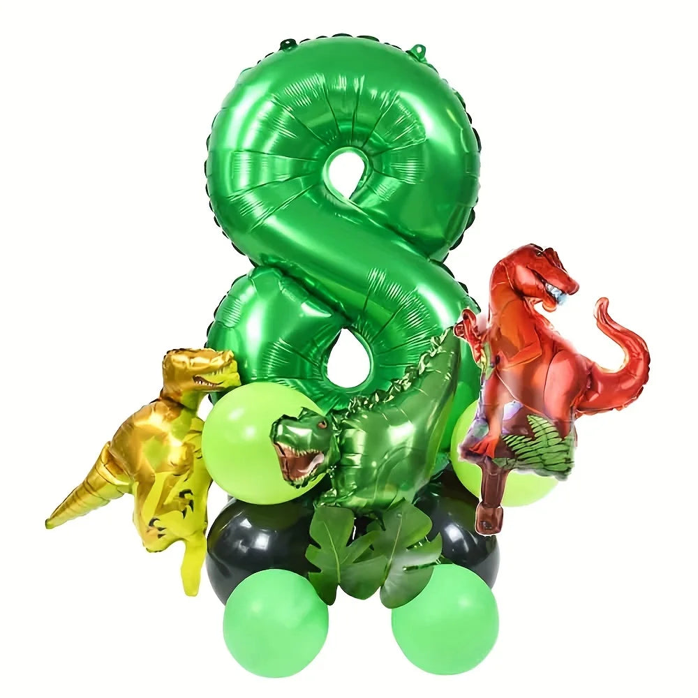 19PCS/PACK 32 inch Green Digital Dinosaur Aluminum Film Balloon Set Forest Theme Party Decoration Balloon