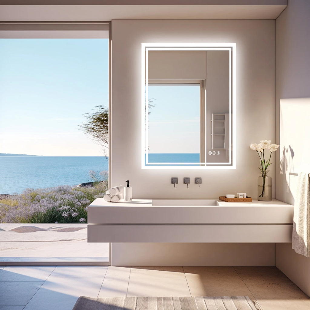 LED Backlit Mirror Bathroom Vanity with Lights,Anti-Fog,Dimmable,CRI90+,Touch Button,Water Proof,Horizontal/Vertical