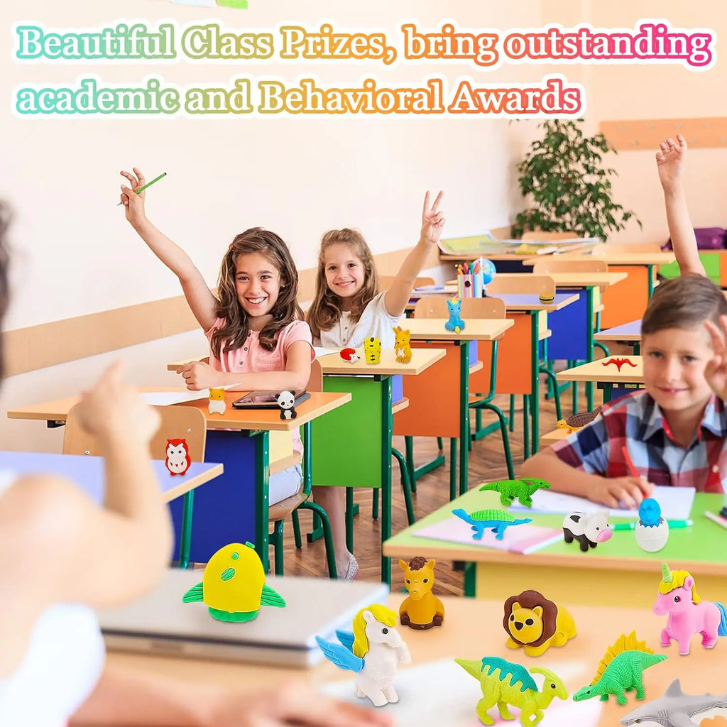 kids animal erasers included.