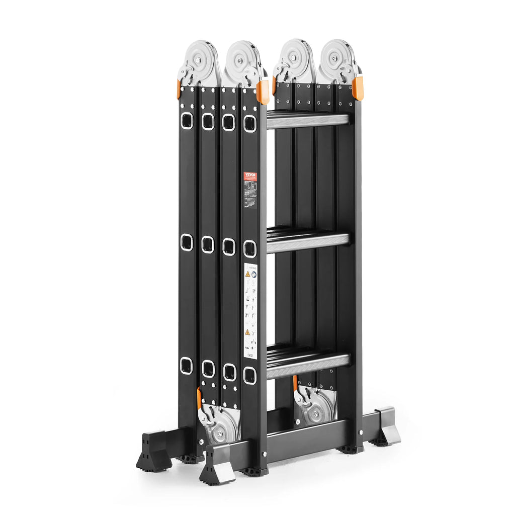 This multifunctional folding ladder is designed to fulfill all your height access demands. Crafted from strengthened aluminum, it is highly resistant to bending or deformation. The hinge can be adjusted to 35°, 107°, and 180°. Ideal for home, work, and outdoor activities, it offers stability and flexibility in any circumstances.