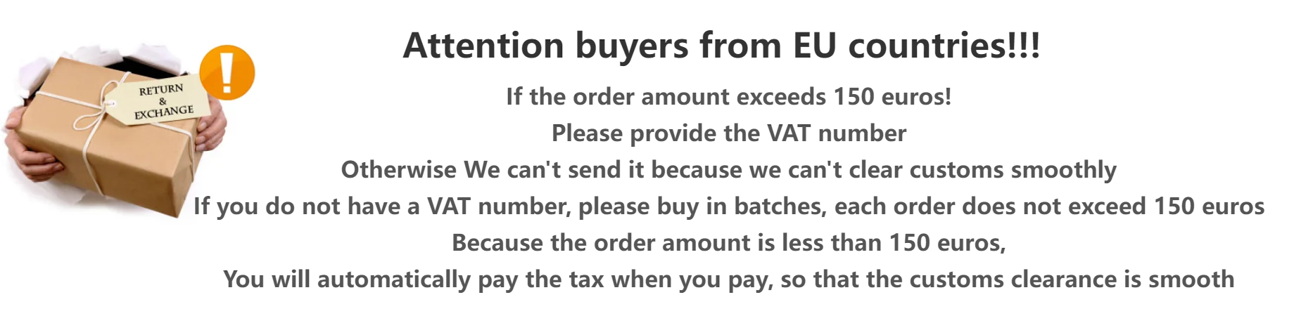 If you do not have a VAT number, please buy in batches, each order does not exceed 150 euros
