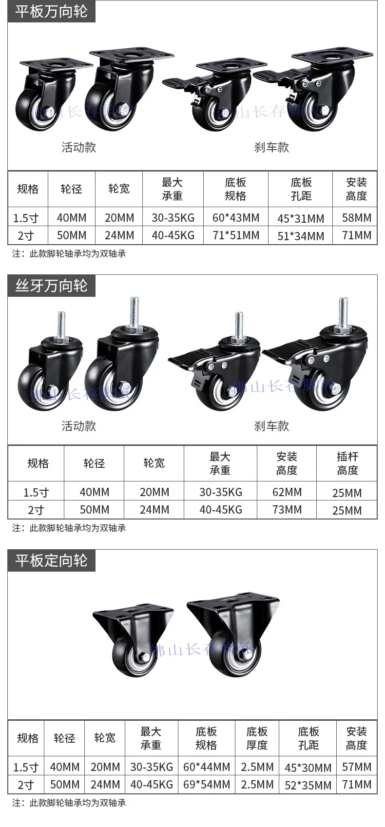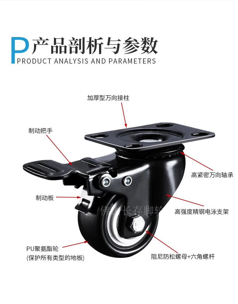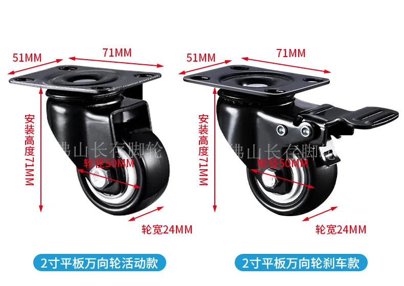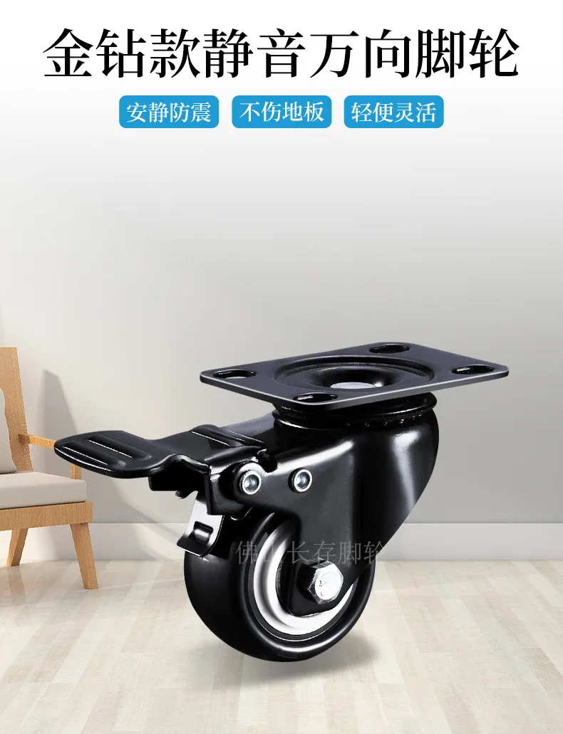 1PCS 1.5/2 Inch Screw Wheel Double Bearing Industrial Universal Wheel Flat Brake Gold Drill Caster Pulley