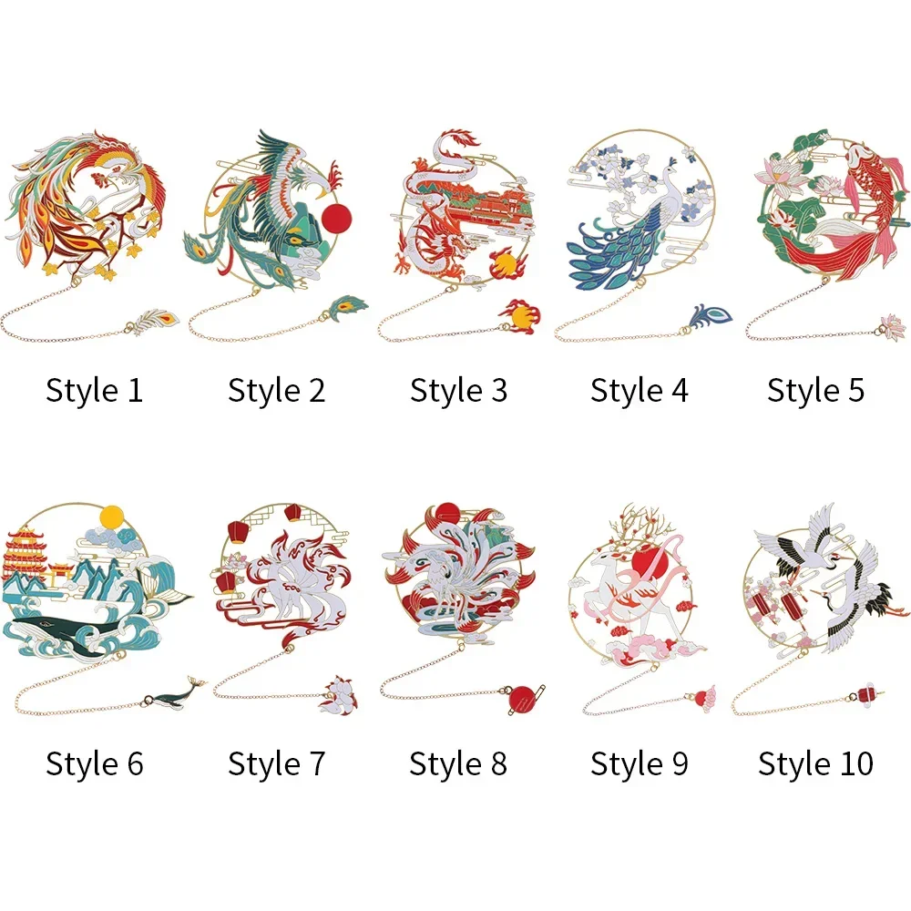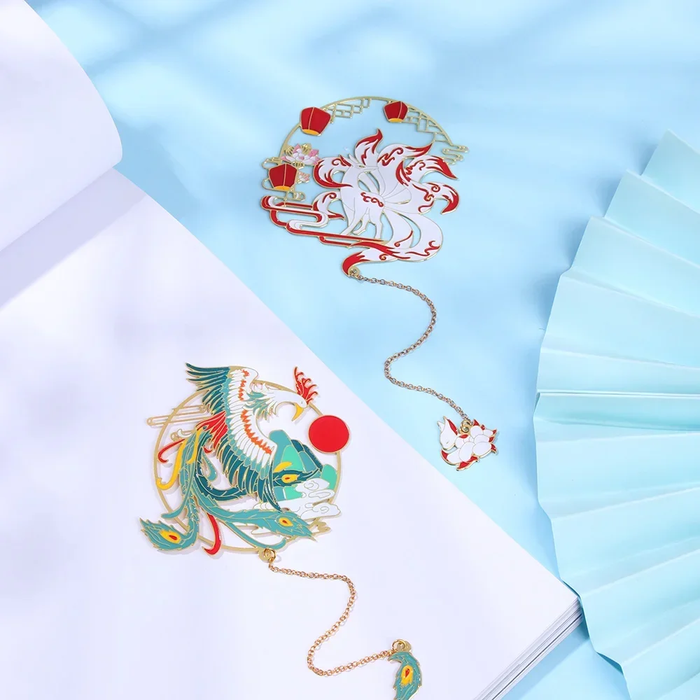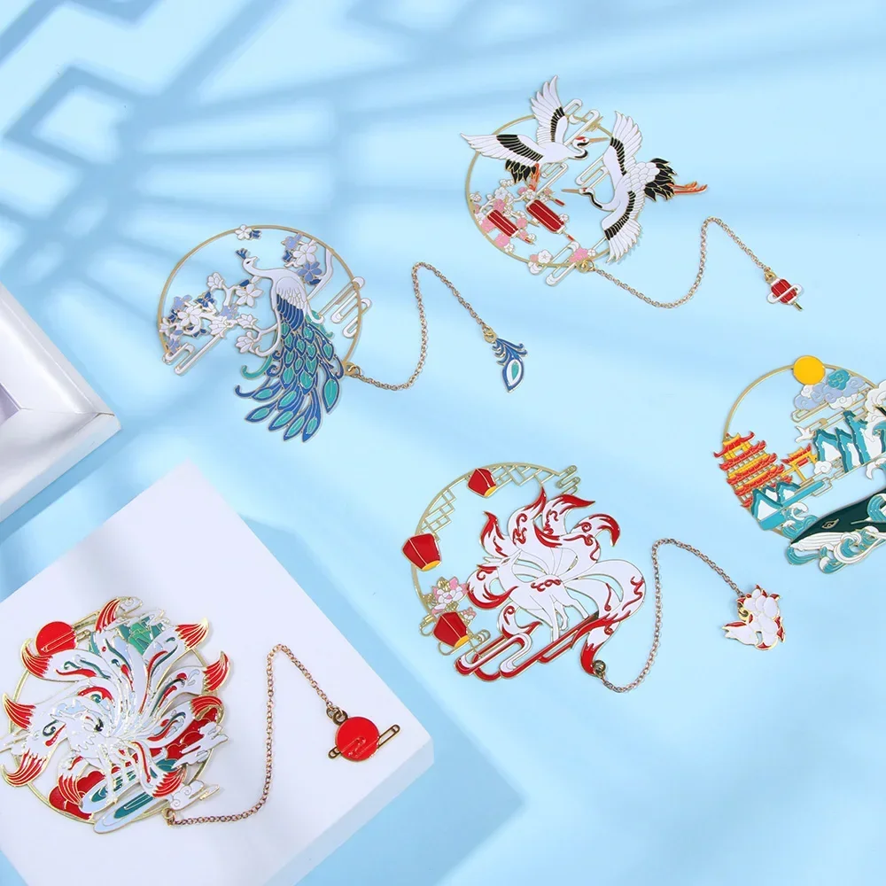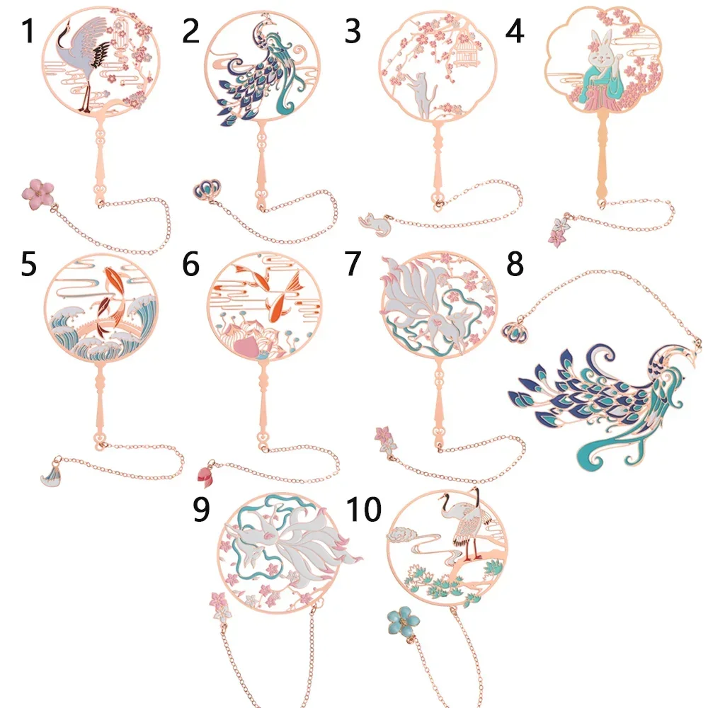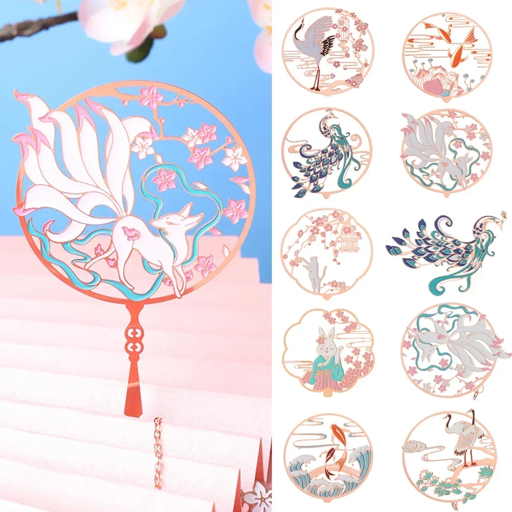 Chinese Design Painting Group Fan Book Clip Pagination Mark Tassel Student Creative School Stationery Metal Bookmark