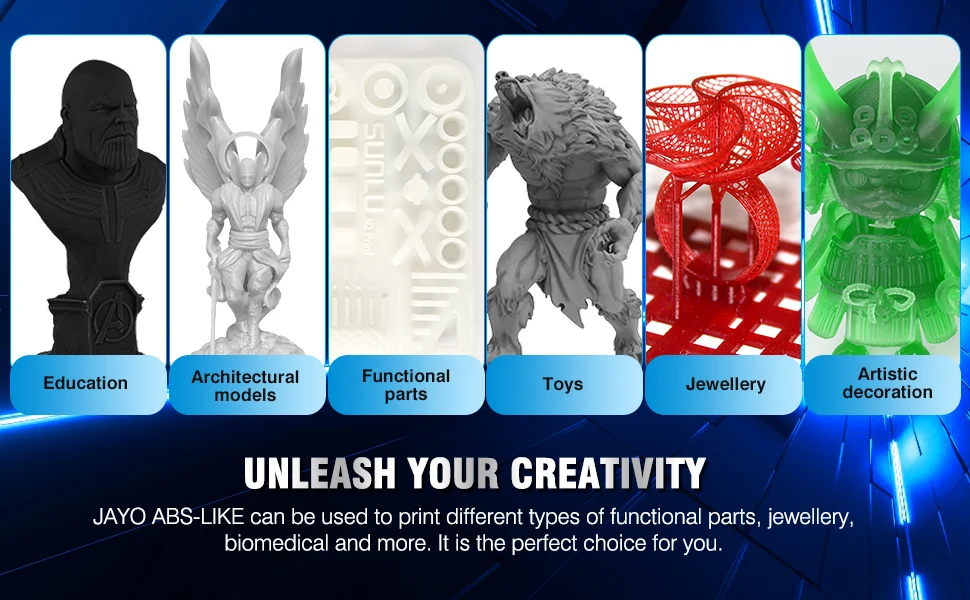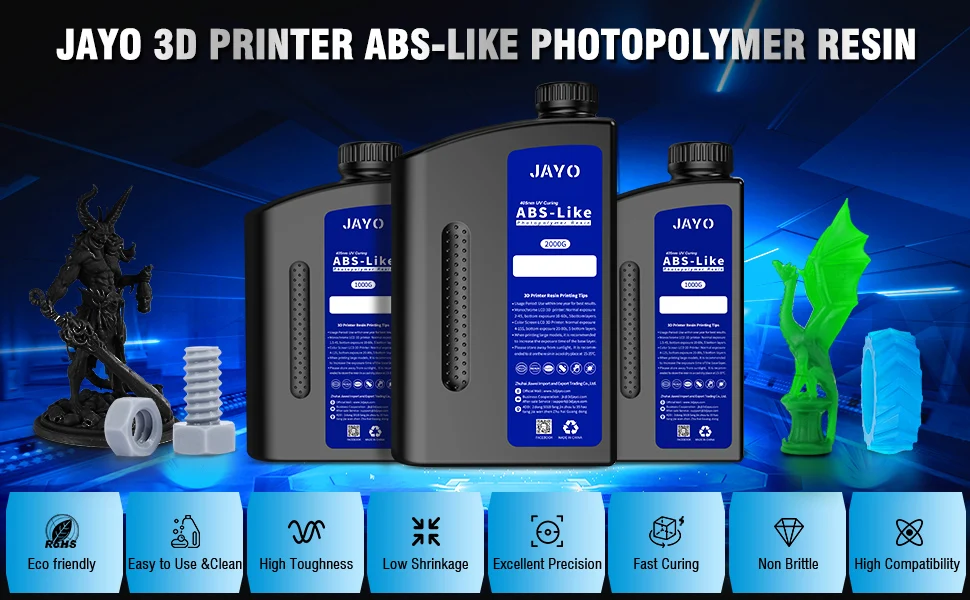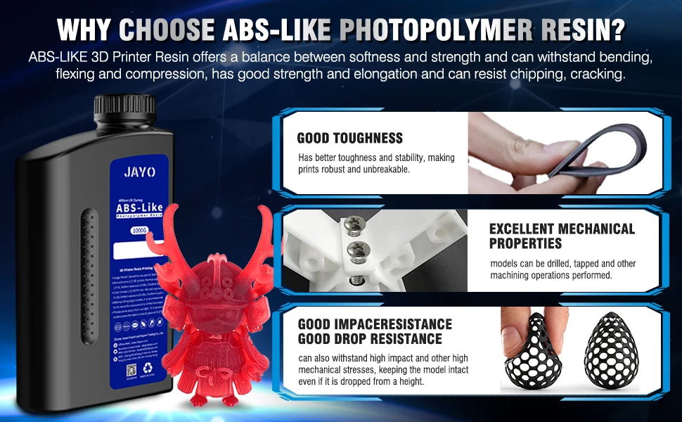 JAYO ABS-Like 3D Printer Resin has the feature of ABS which is high toughness and hardness.
