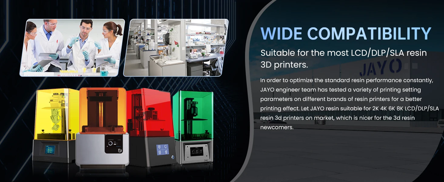 【High Compatibility & Easy to Use】Tested on different 3D resin printers, JAYO Standard Plus resin is suitable for most 2K/4K/6K/8K LCD DLP SLA 3D printers