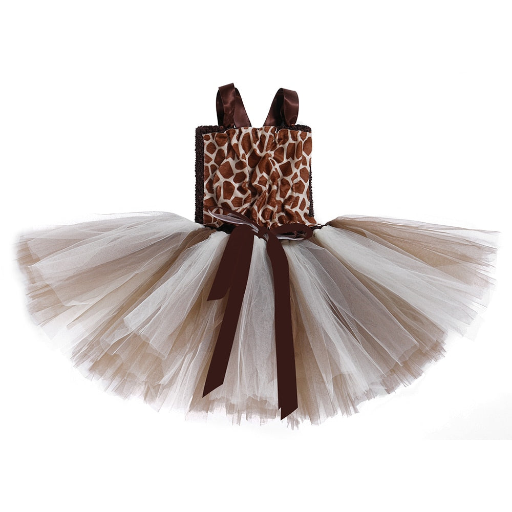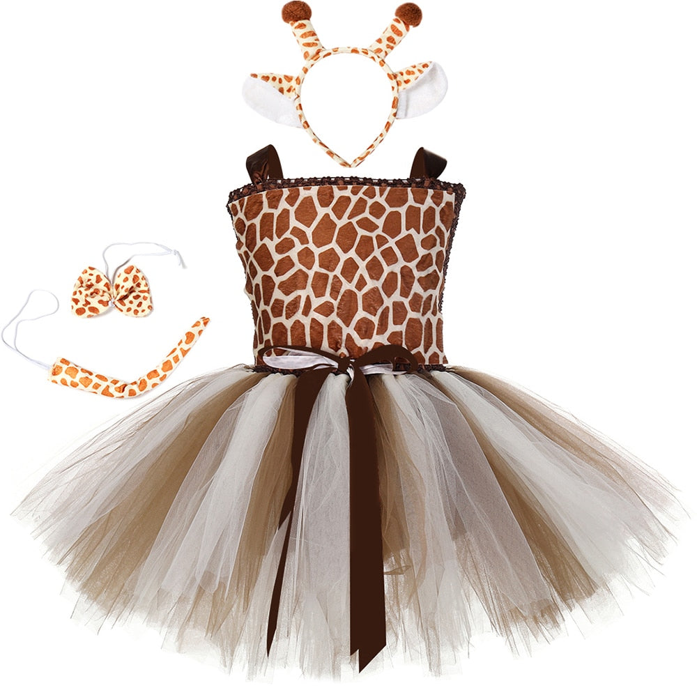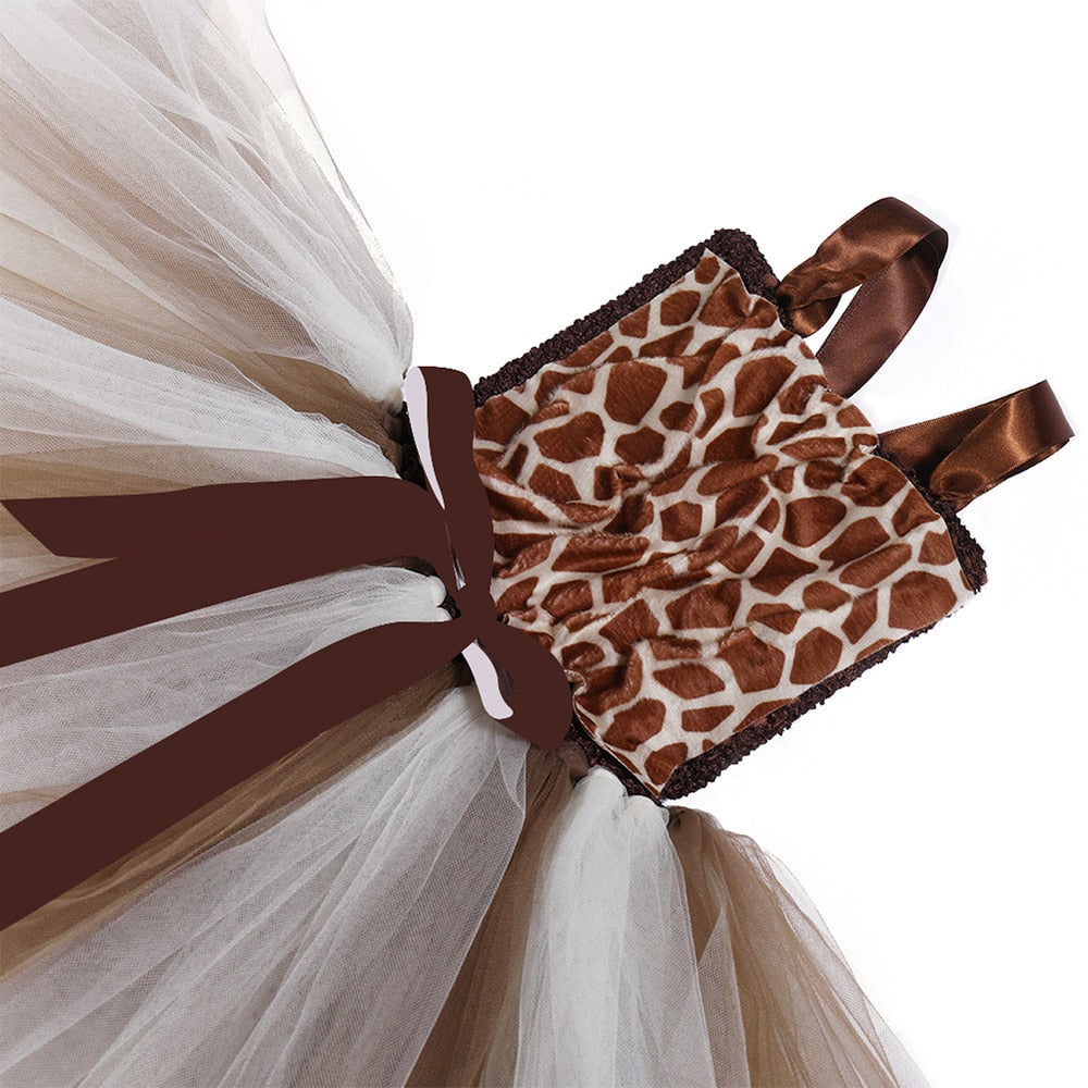 1Set Giraffe Girls Tutu Dress Outfit Zoo Animal Kids Halloween Costume Toddler Baby Girl Fancy Performance Birthday Party Dress