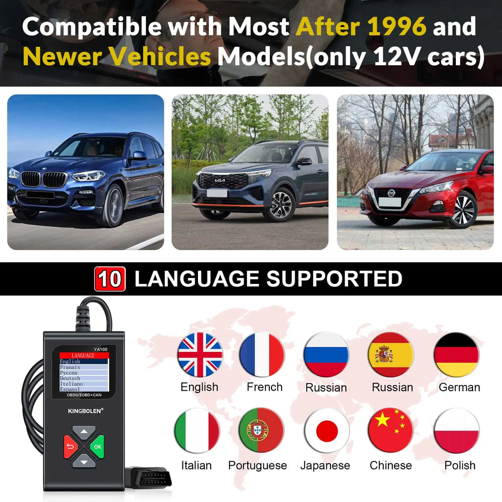 KINGBOLEN YA100 Enhanced Obd2 Scanner, Check Engine Read Code and Clear Fault Code with Full OBDII Functions for All OBD2/EOBD Cars Multi-language Lifetime Free Update