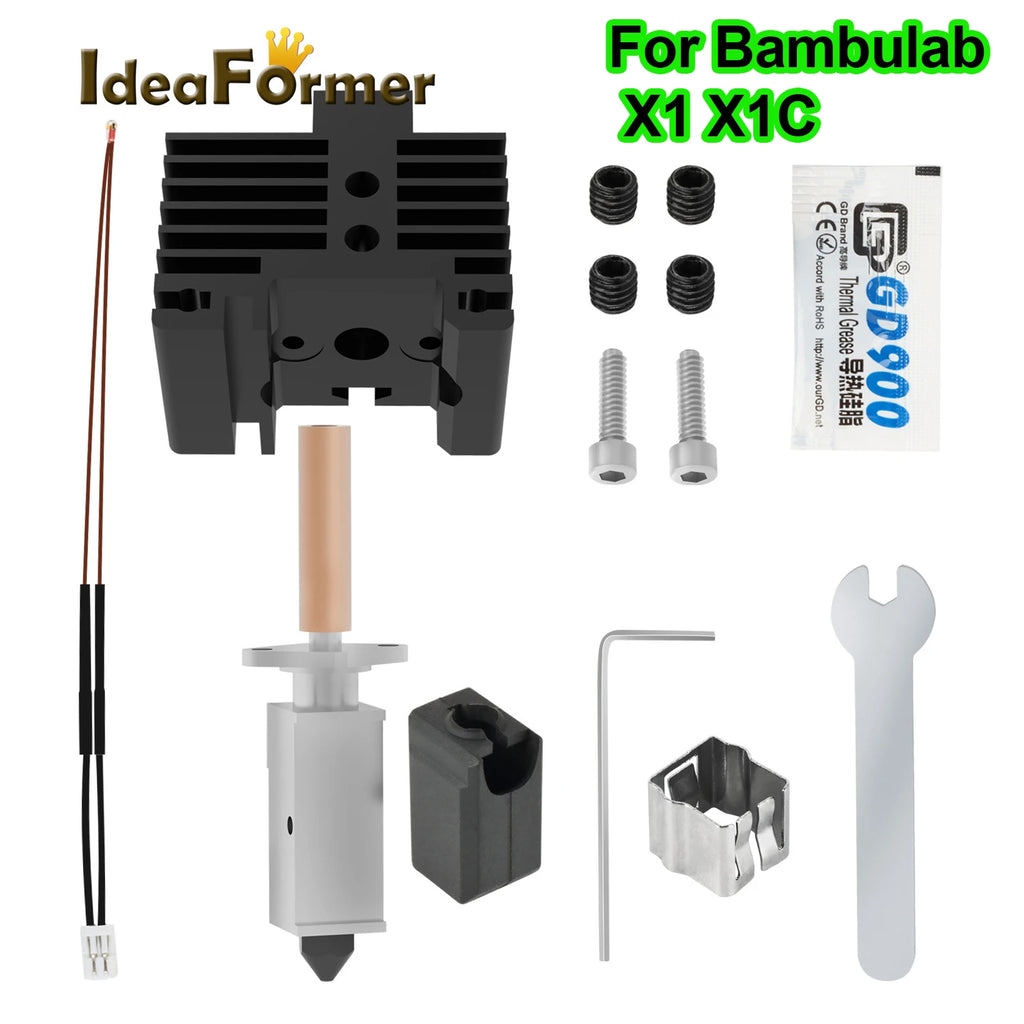 Upgrade Hotend For Bambu Lab X1 X1Carbon Bi Metal Heatbreak Hard Steel Nozzle Thermistor Fit Bamboo Bambulabs P1P P1S hotend
