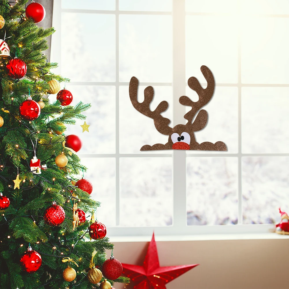 Christmas Door Window Stickers DIY Felt Cloth Elk Snowman Santa Claus Wall Sticker Noel Christmas Decoration Happy New Year 2025