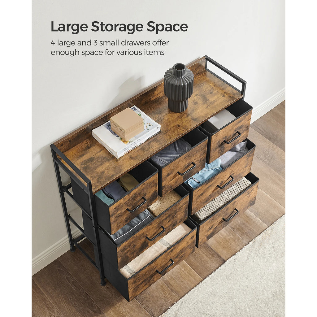- 【SPACIOUS & SORTED】You can easily sort your stuff with 7 drawers (4 large & 3 small). Each large drawer can hold 60-70 socks, 13-16 T-shirts, or 7-11 pairs of trousers. Each small one can hold 40-45 socks, 9-10 T-shirts, or 4-7 pairs of trousers