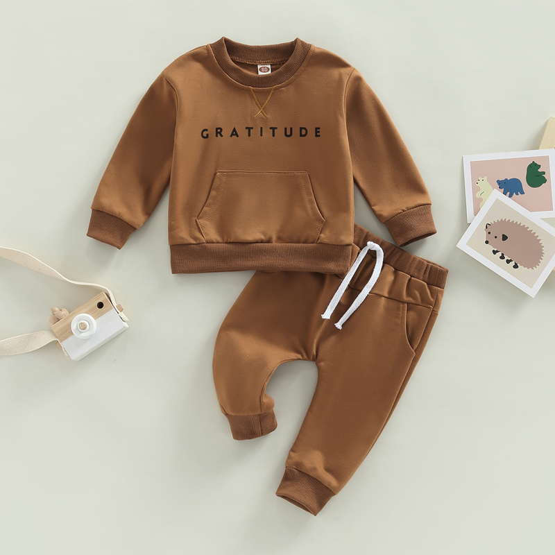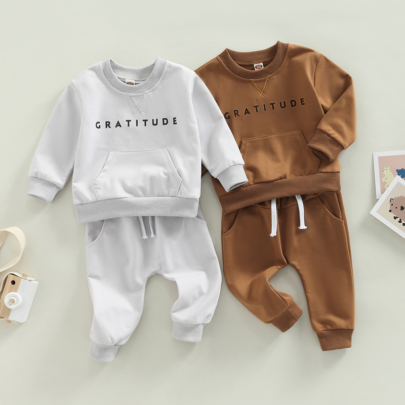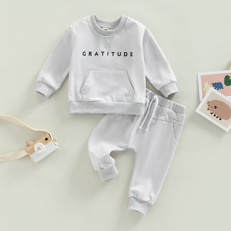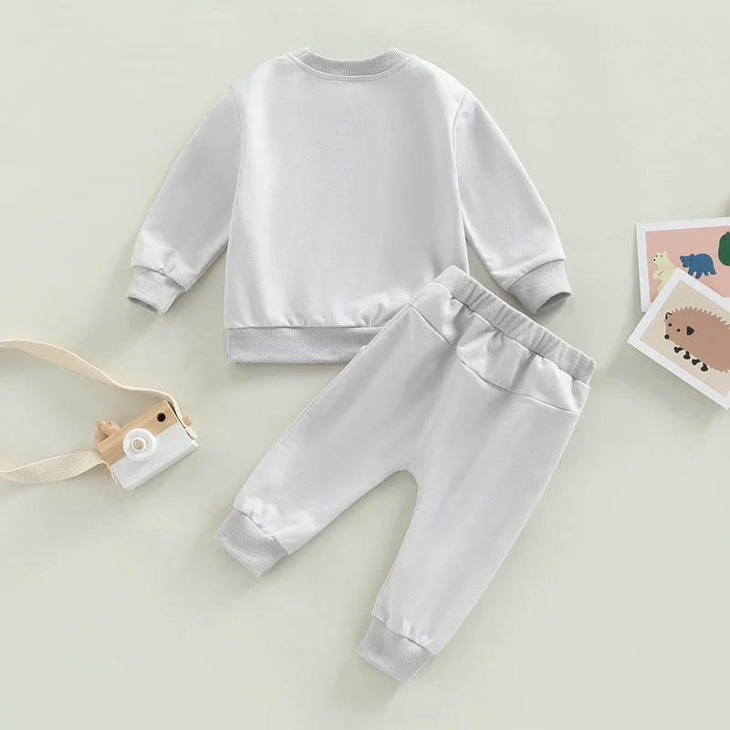 Baby Girls Boys 2 Pieces Outfit, Letter Print Round Neck Long Sleeve Sweatshirts Tops + Elastic Waist Long Pants SetSize chart:(cm/inch)