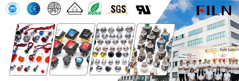 FILN produce luces indicadoras, interruptores de botón, interruptores de barco, interruptores de guitarra, interruptores de sistema de control táctil, microinterruptores a prueba de agua y otros productos.