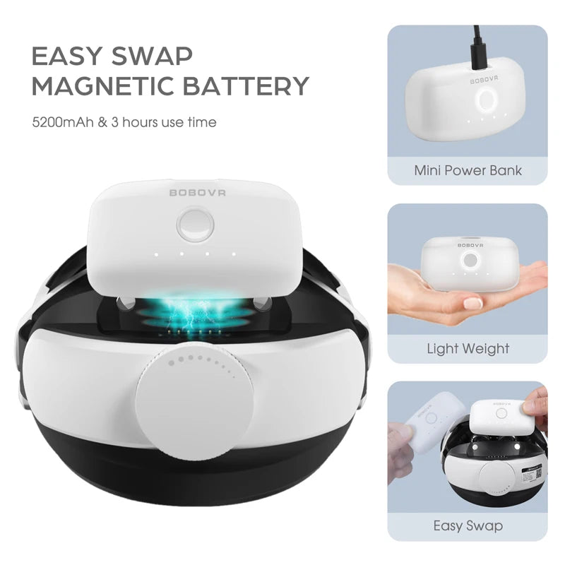 • BOBOVR M2 Pro is a 5200mAh battery battery head strap designed for Oculus Quest 2. Adding about 2-3 hours of battery life for Oculus Quest 2.