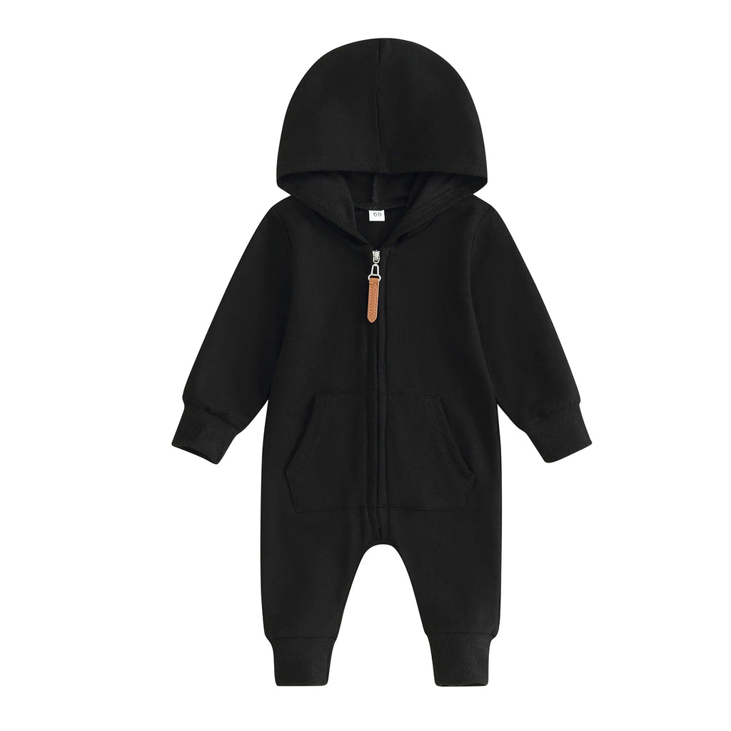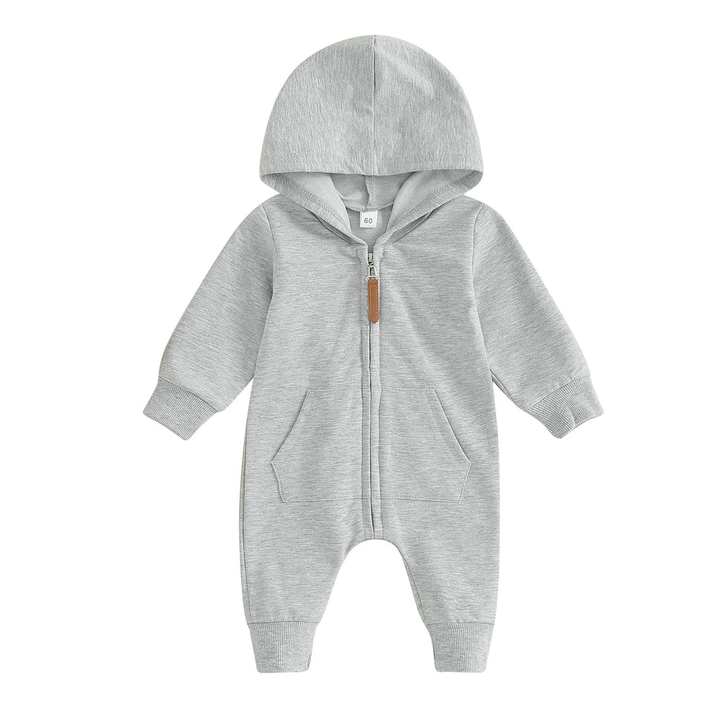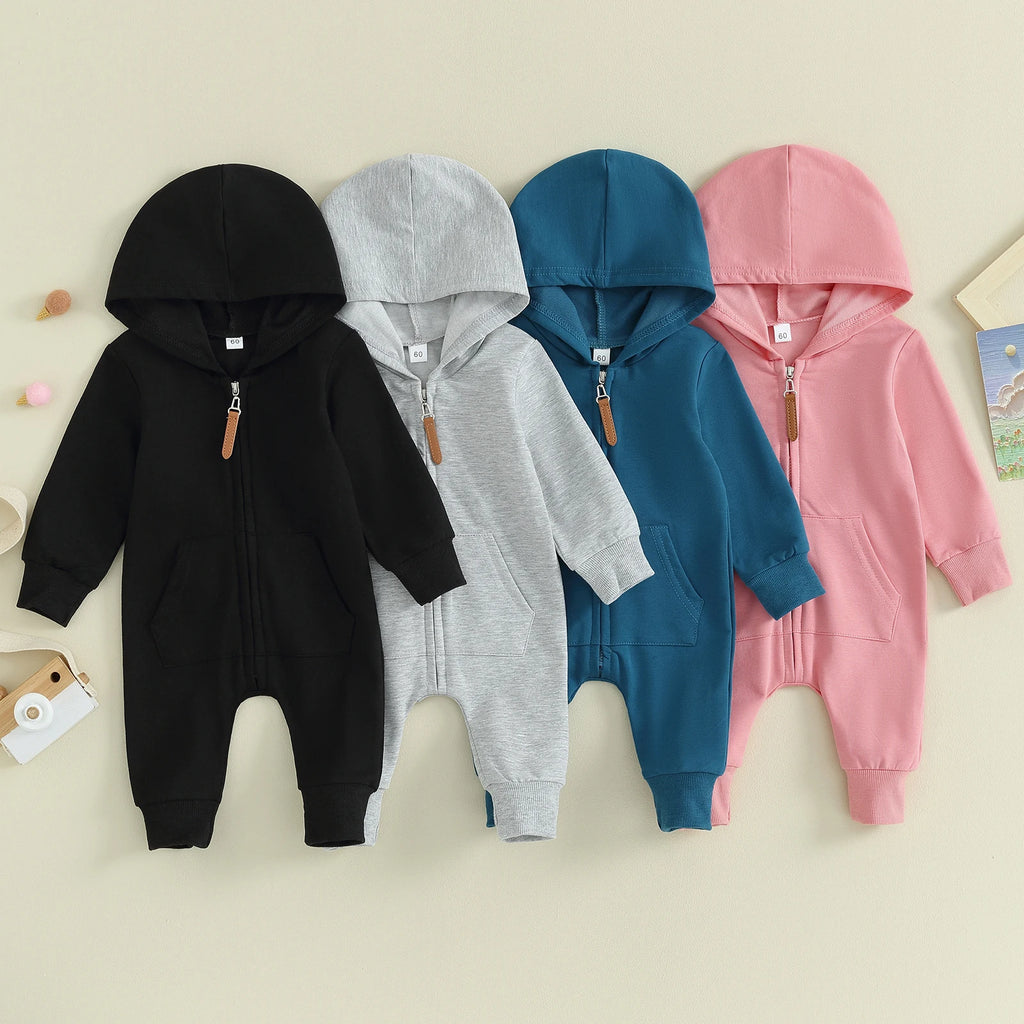Baby Jumpsuit, Long Sleeve Hooded Zip-up Solid Fall Romper Clothes for Boys GirlsA good combination of comfort and style, the jumpsuit gives your baby a comfortable wearing experience.
