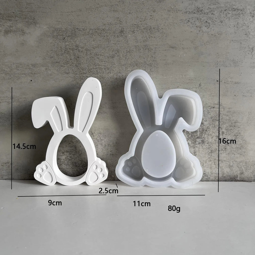 Rabbit Family Silicone Mold Bnuuy Family Concrete Plaster Casting Mould Easter Series Heart Rabbits Plaster Ornaments Molds