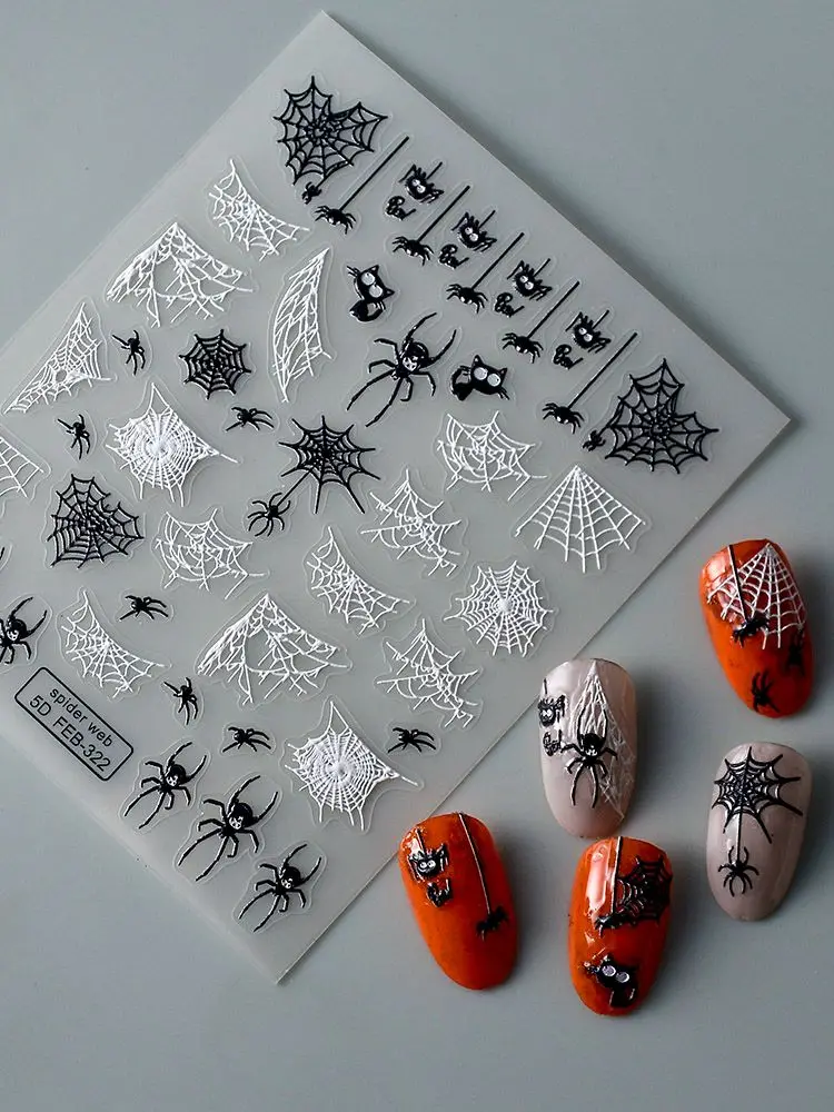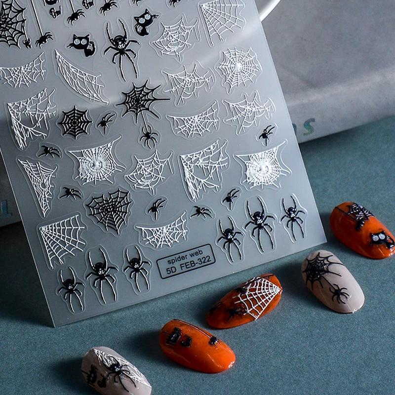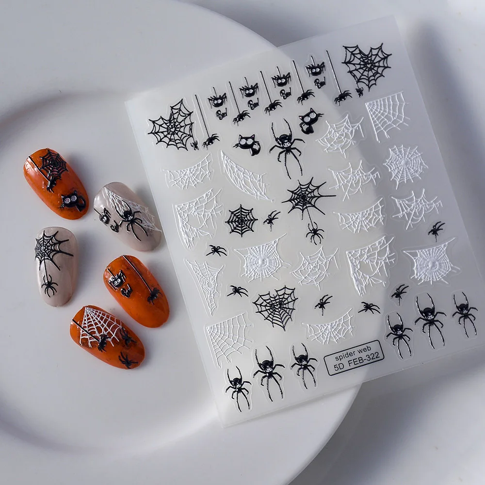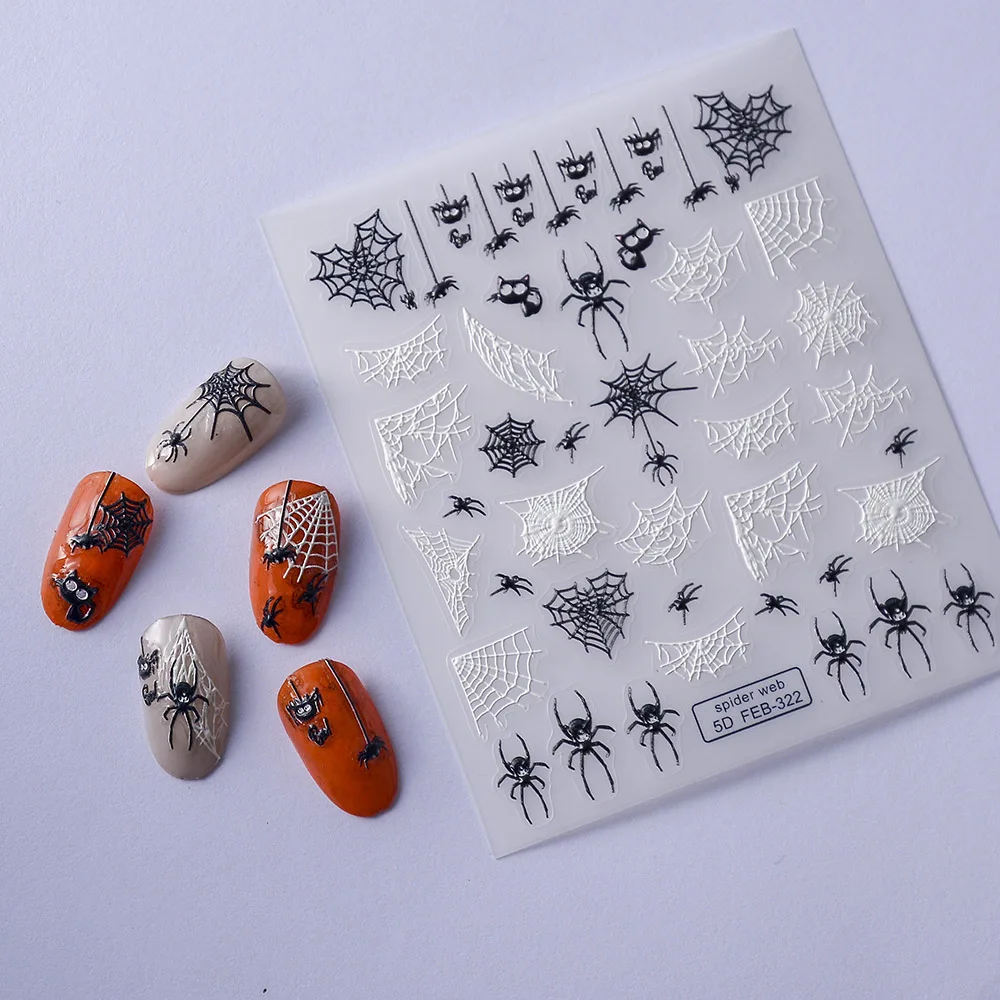 2023 Glowing In The Light Happy Festival Diy Manicure Design Self Adhesive Spider Halloween Nail Art Sticker