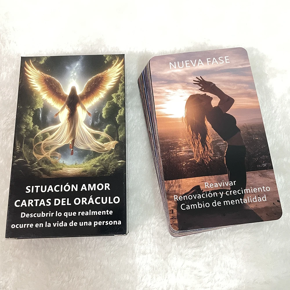 Spanish Oracle Cards, Love Tarot Deck, Situations Oracle Deck, Taro for Beginner Keywords, 12x7cm, 53 Cards