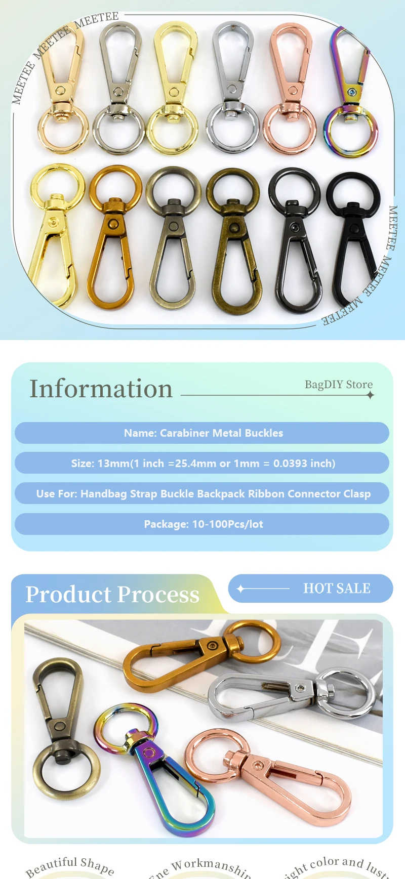 10-100Pcs Meetee 13mm Carabiner Metal Buckles Dog Collar Lobster Clasp Bag Strap Connect Buckle KeyChain Hook Hardware Accessory