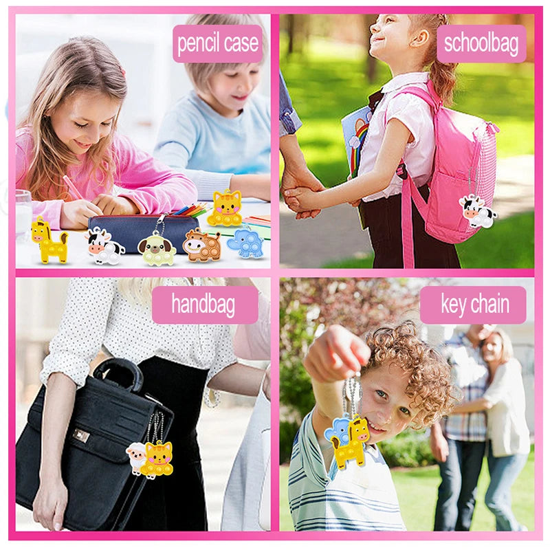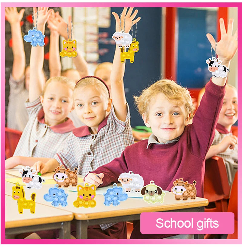 10/40Pcs Cartoon Animal Pop Keychain Hanging Stress Relief Toys Kids Birthday Party Favors Guests Gift Goodie Bag Pinata Filler