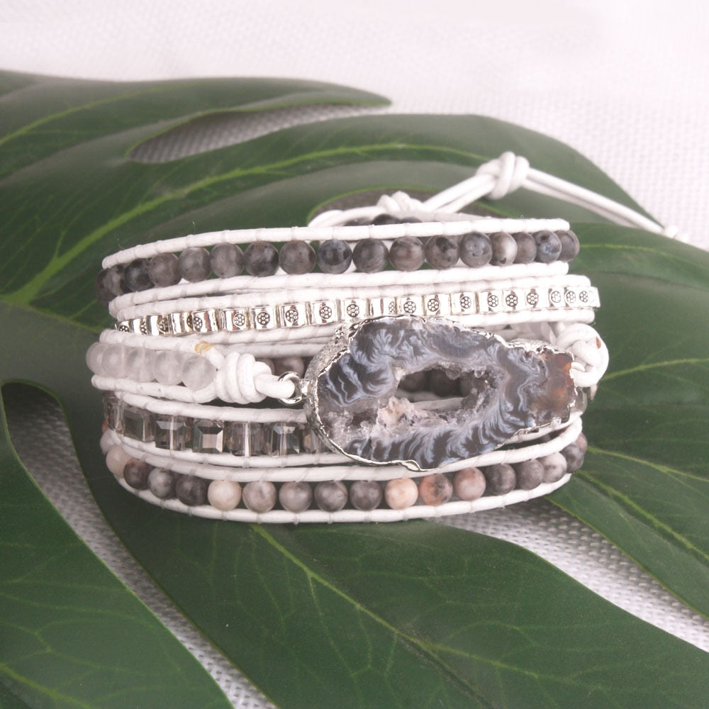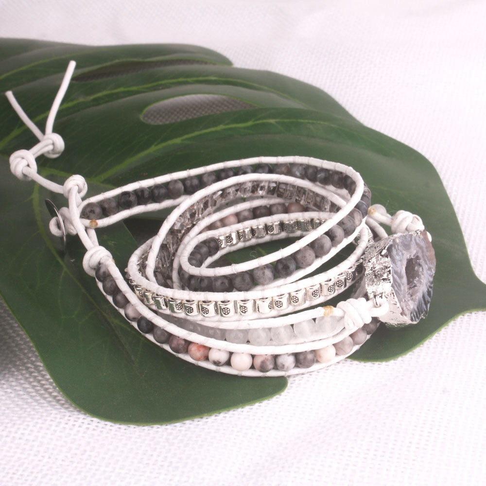 5x leather wrap bracelet Natural stone crystal mix Multi Color combos bracelet for women