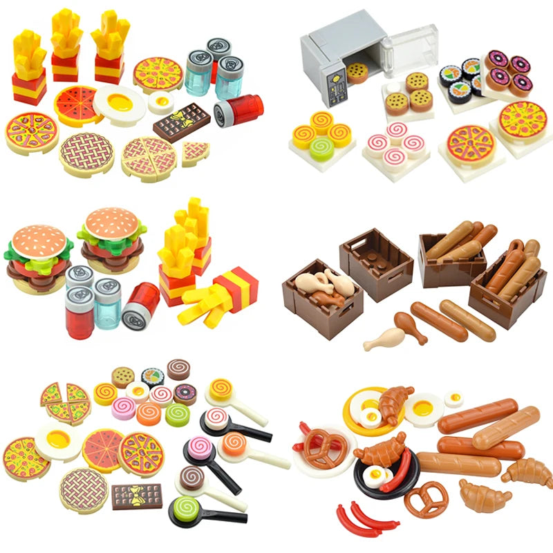 City Food Hamburger Fries Accessories Friends MOC Building Blocks Drinks Fruit Vegetable Bread Fish Bottle Parts MOC Brick Leduo
