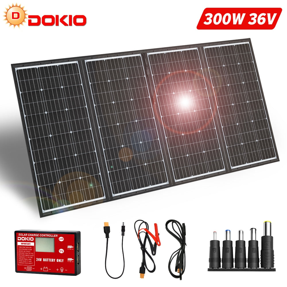 Dokio 300W 18V Flexible Foldable Solar Panel Hiqh Quality Portable Solar Panel China For Camping/Boat/RV/Travel/Home/Car