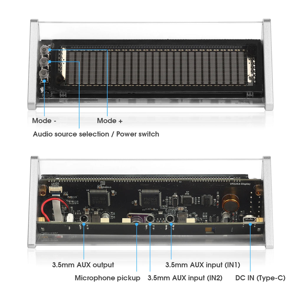 Nobsound Bluetooth 5.0 VFD Clock Music Spectrum Display Screen Sound Level Meter 3.5mm AUX Audio Switcher Box