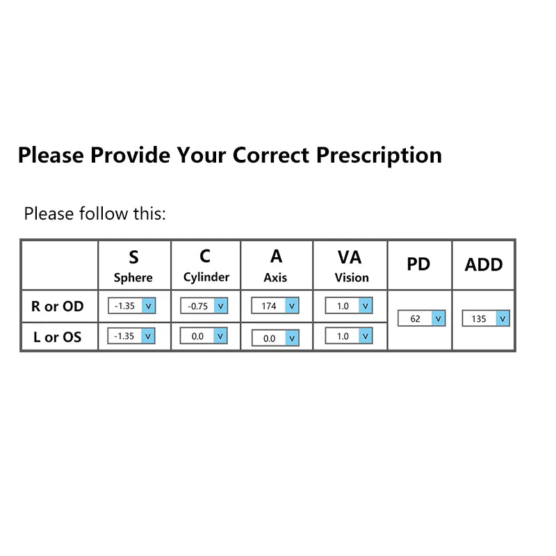 Prescription lenses under one of below four conditions belongs to customized lenses,We has to make the lenses specially for you, they will ask for extra cost USD 8 or USD20.