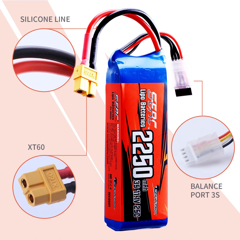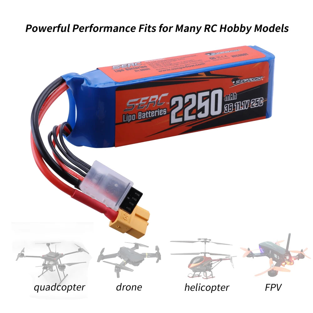 2packs Sunpadow 3S 11.1V Lipo Battery 2250mAh with XT60 Plug for RC Airplane Quadcopter Helicopter Racing Hobby