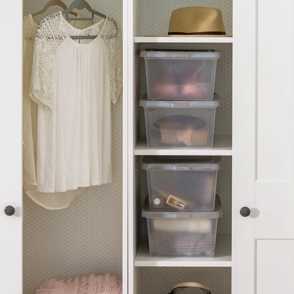 These Plastic Storage Bins with Lids, Clear, Stackable Totes Containers are the ultimate solution for all your storage needs. Available in 17qt, 24.5qt, and 36qt sizes, these storage bins are durable and functional. The clear design allows for easy identification of contents, while the secure locking lids protect items from dust and moisture. The stackable design maximizes vertical space, making them ideal for closets, basements, and storage rooms. Made from high-quality, durable plastic, these storage bins can withstand heavy loads and blend in beautifully with any decor. They are perfect for storing seasonal clothing, holiday decorations, crafts, and more. The practical design and sturdy construction make them a must-have for maintaining a neat and organized space. Whether you're working on an organizational project or just looking to clear clutter, these stackable totes will keep your space neat and efficient.