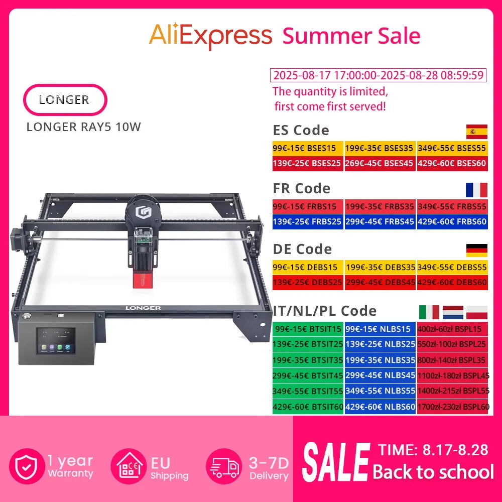 LONGER RAY5 10W Laser Engraver, 0.06x0.06mm Laser Spot, Touch Screen, Offline Carving, 32-Bit Chipset, Working Area 400x400mm